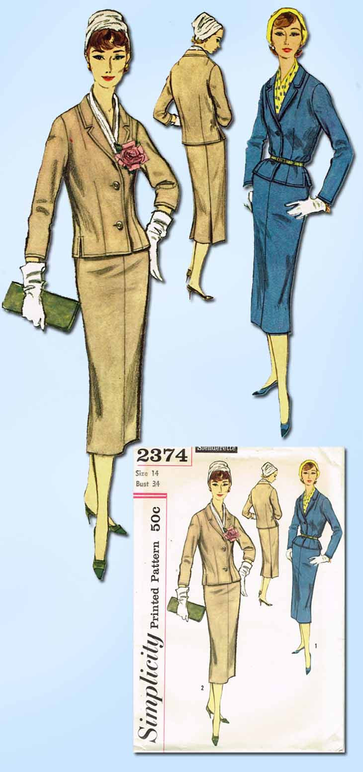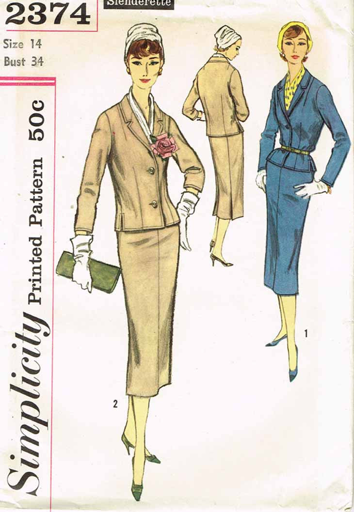 1950s Vintage Simplicity Sewing Pattern 2374 Uncut Misses Mid Mod Suit Size 14