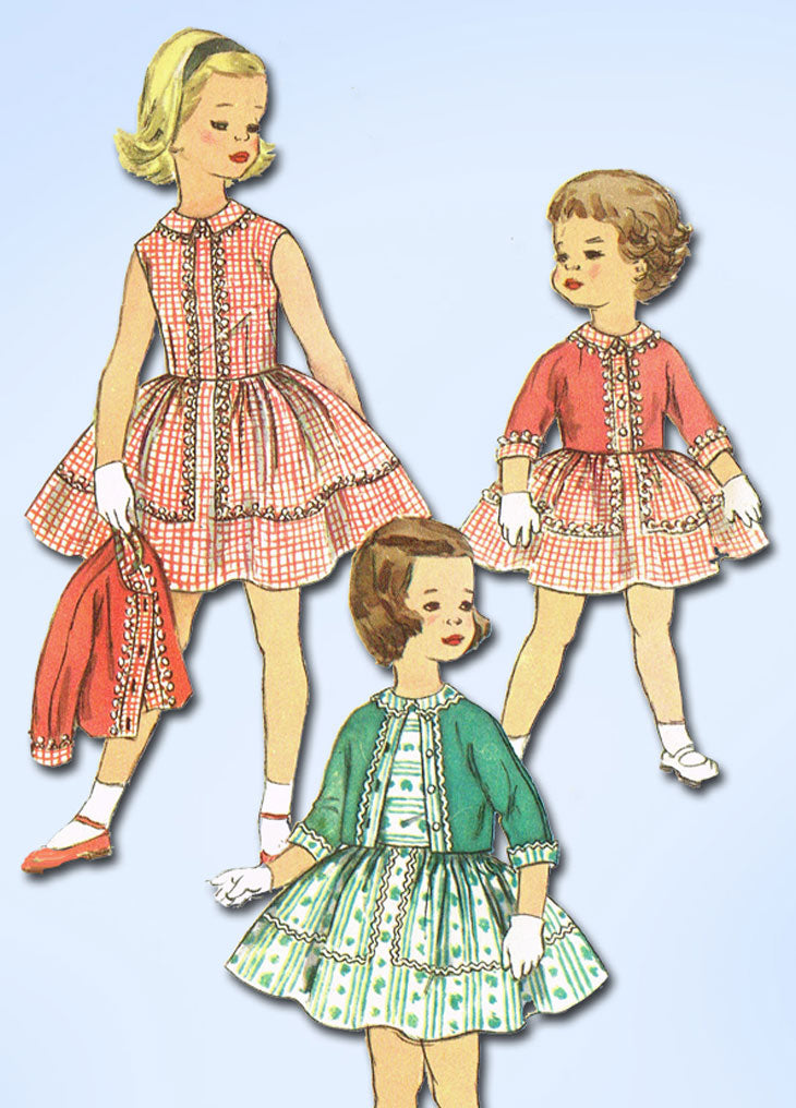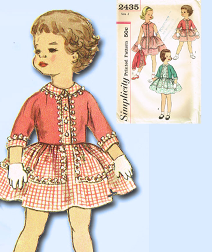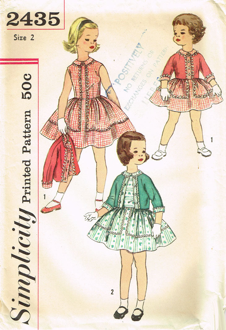 1950s Vintage Simplicity Sewing Pattern 2435 Toddler Girls Dress & Jacket Sz 2