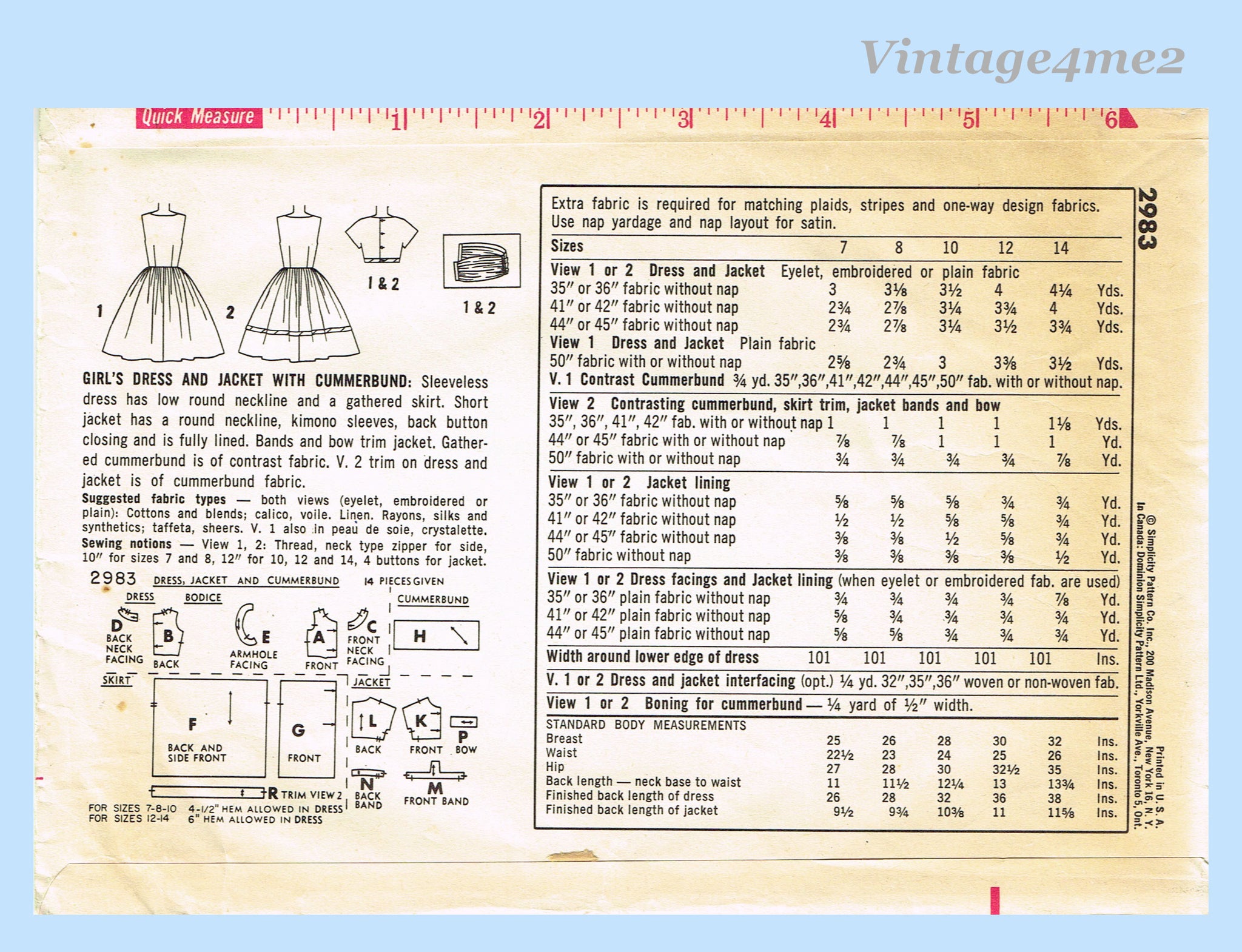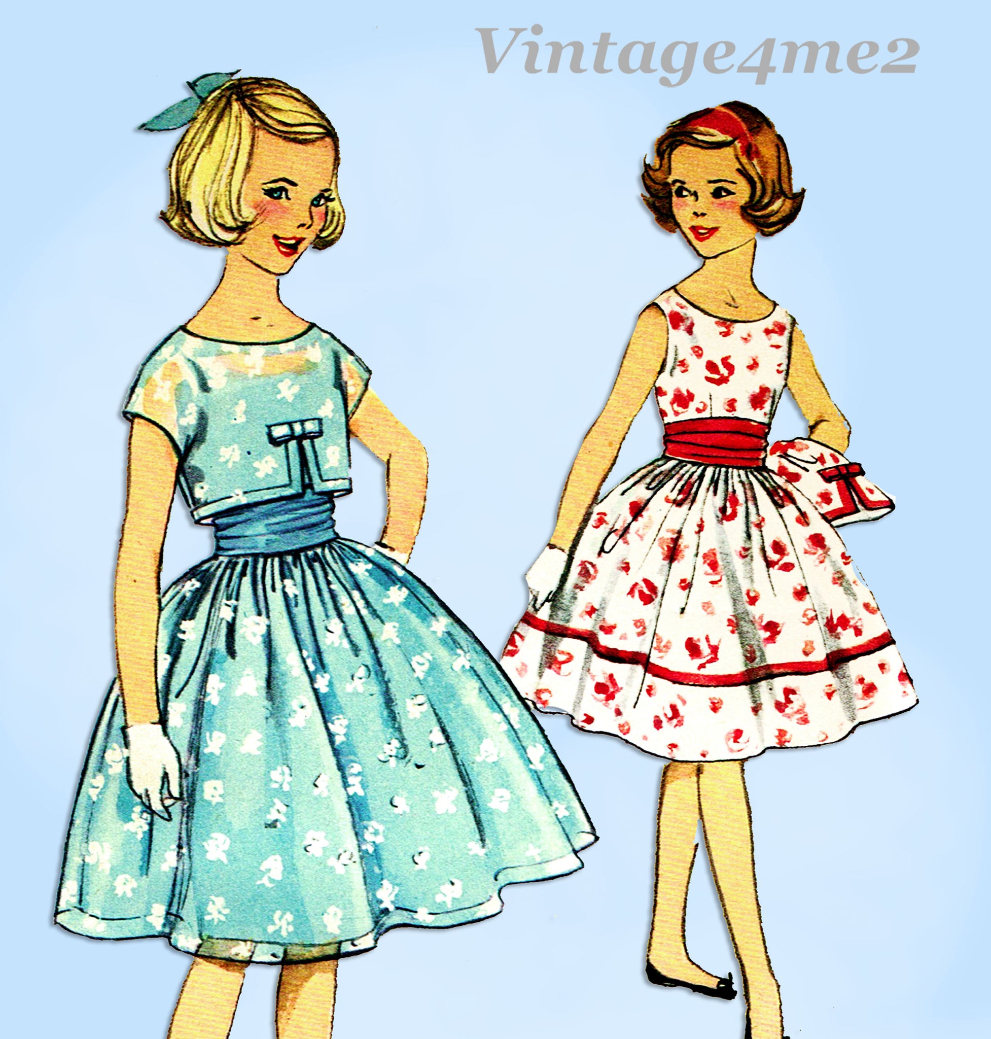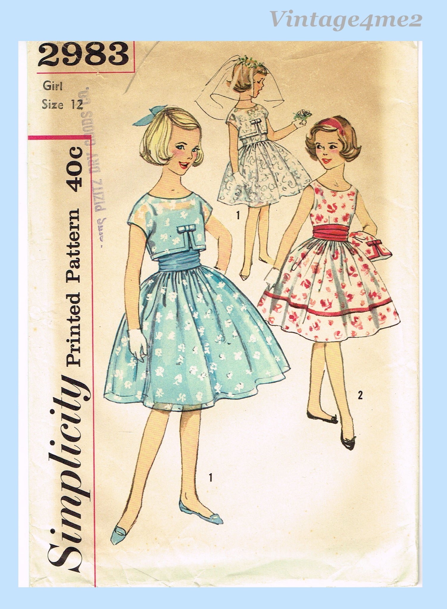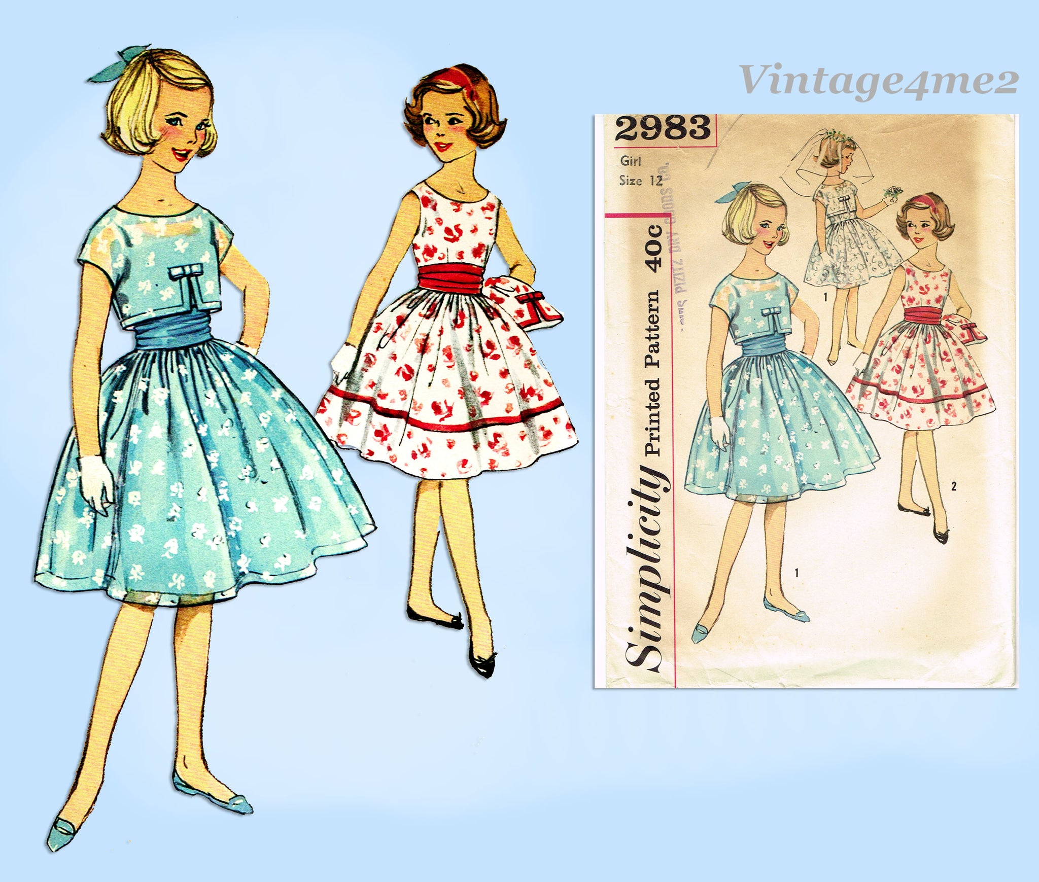 1950s Vintage Simplicity Sewing Pattern 2983 Uncut Little Girls Party Dress Sz 12