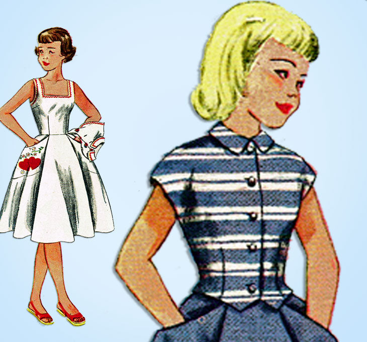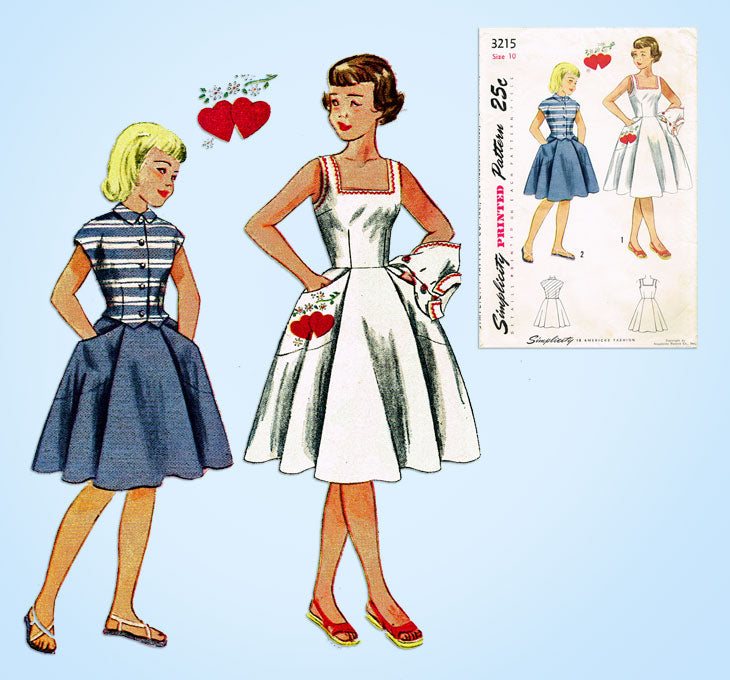 1950s Vintage Simplicity Sewing Pattern 3215 Uncut Girls Sun Dress & Jacket Sz10
