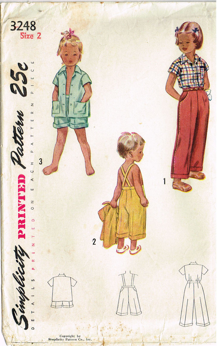 1950s Vintage Simplicity Sewing Pattern 3248 Tiny Toddlers Clamdigger Pants Sz 2