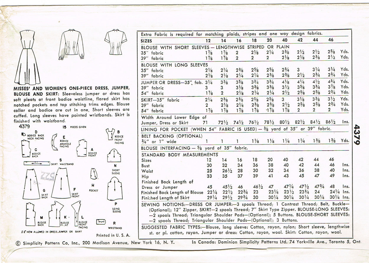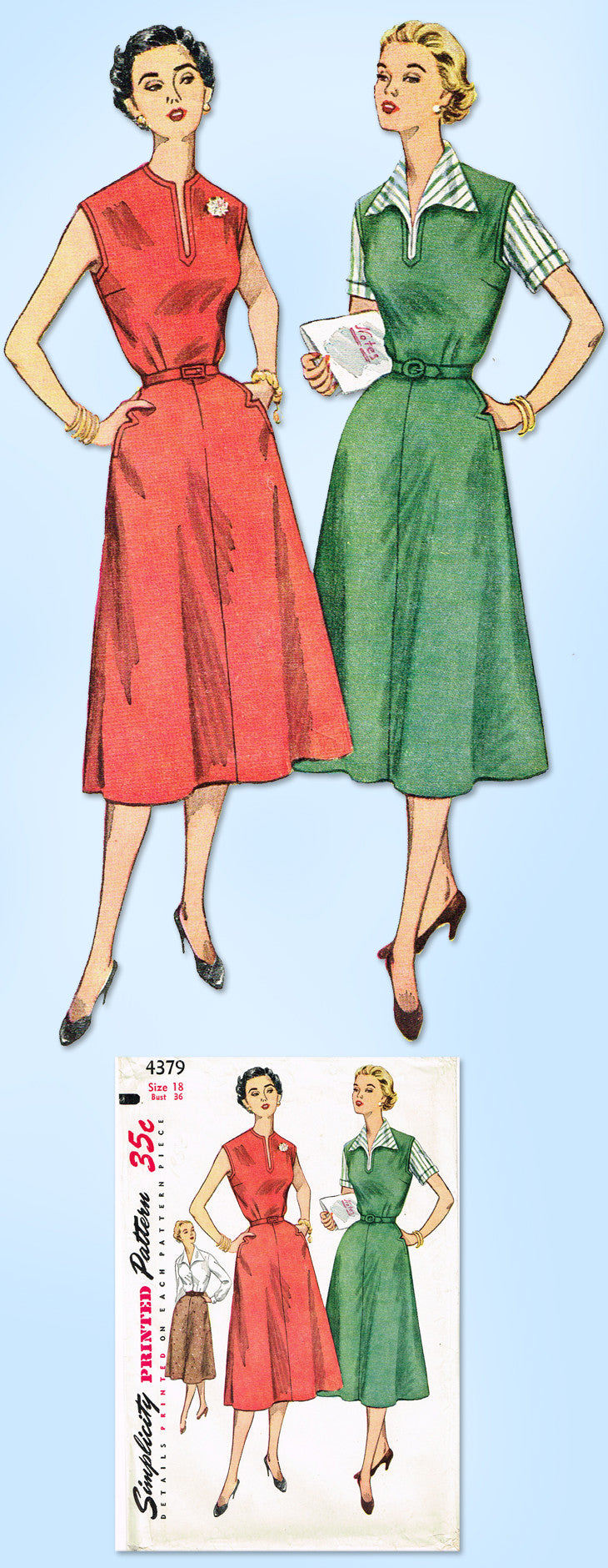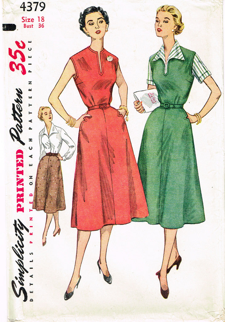 1950s Vintage Simplicity Sewing Pattern 4379 Uncut Misses Dress Skirt Jumper 36B