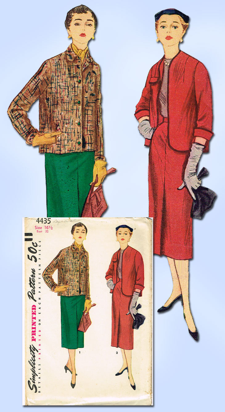 1950s Vintage Simplicity Sewing Pattern 4435 Uncut Misses Half Size Suit Sz 35 B