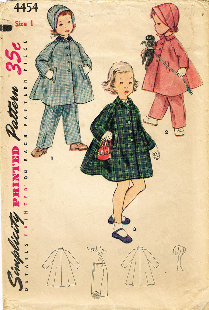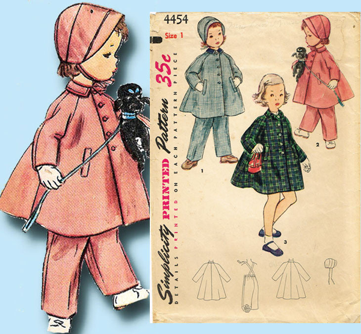 1950s Vintage Simplicity Sewing Pattern 4454 Baby Girls Coat Hat and Pants Sz 1