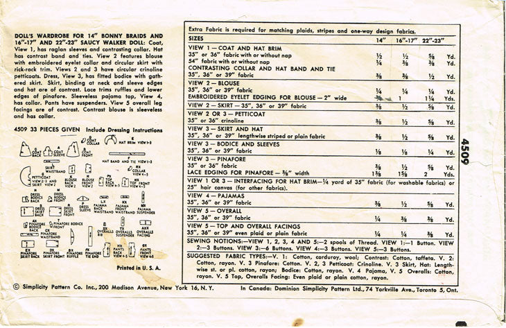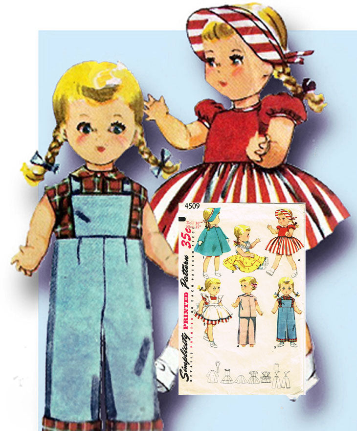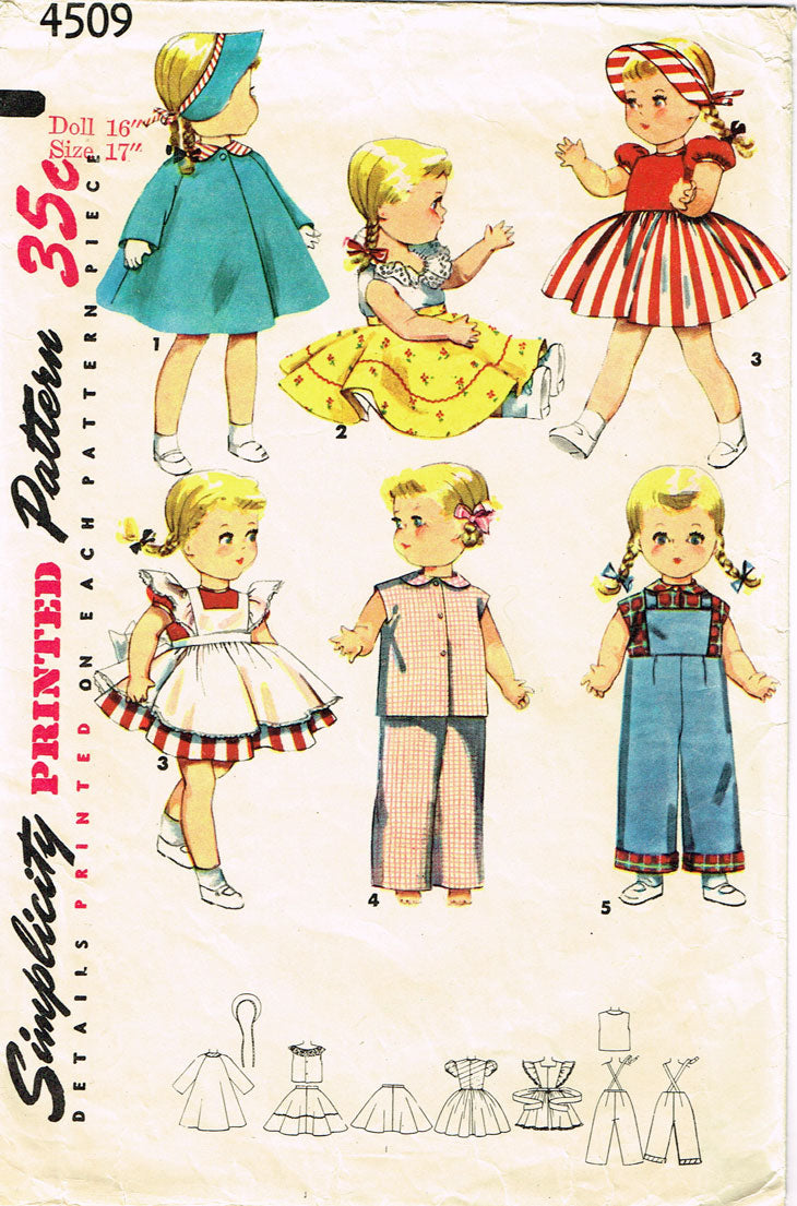 1950s Vintage Simplicity Sewing Pattern 4509 Saucy Walker 16 Inch Doll Clothes