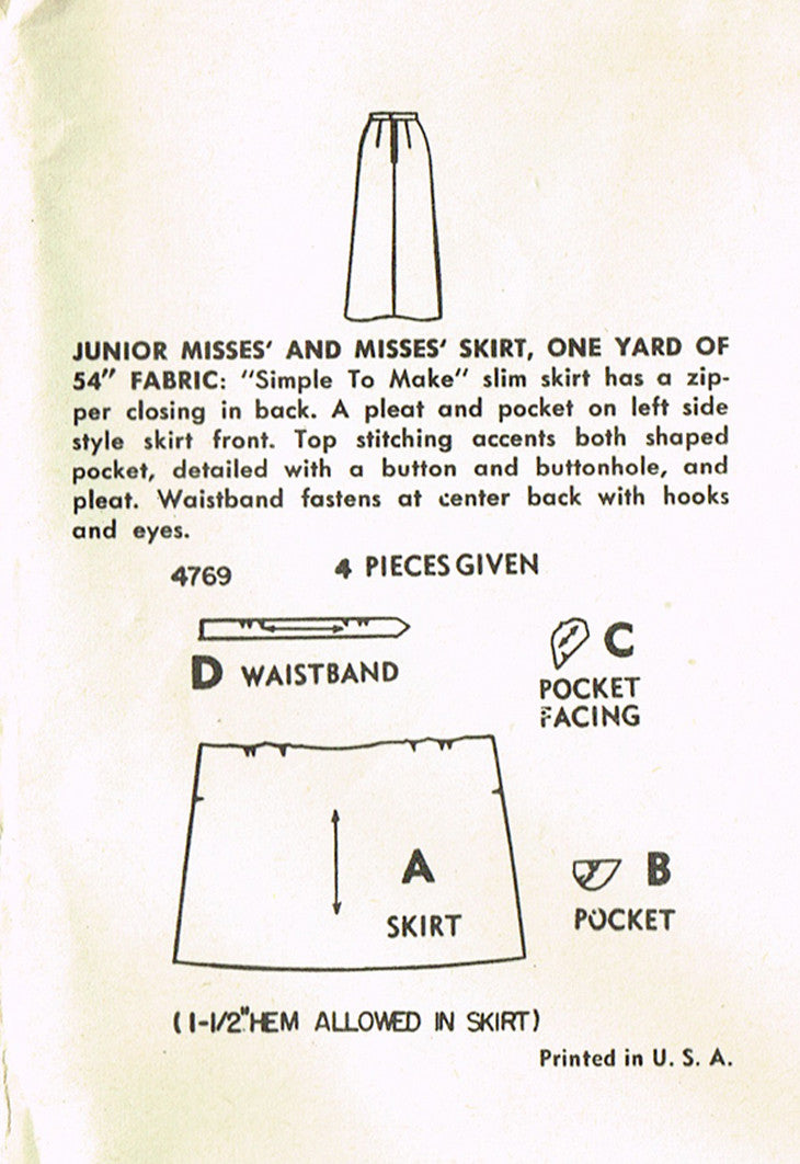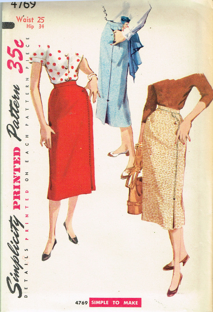 1950s Vintage Simplicity Sewing Pattern 4769 Uncut Misses Easy Day Skirt Sz 25 W
