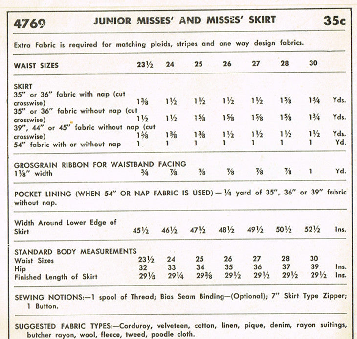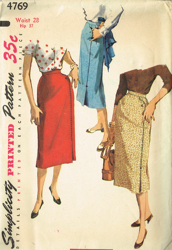 1950s Vintage Simplicity Sewing Pattern 4769 Uncut Misses One Yard Skirt Sz 28 W