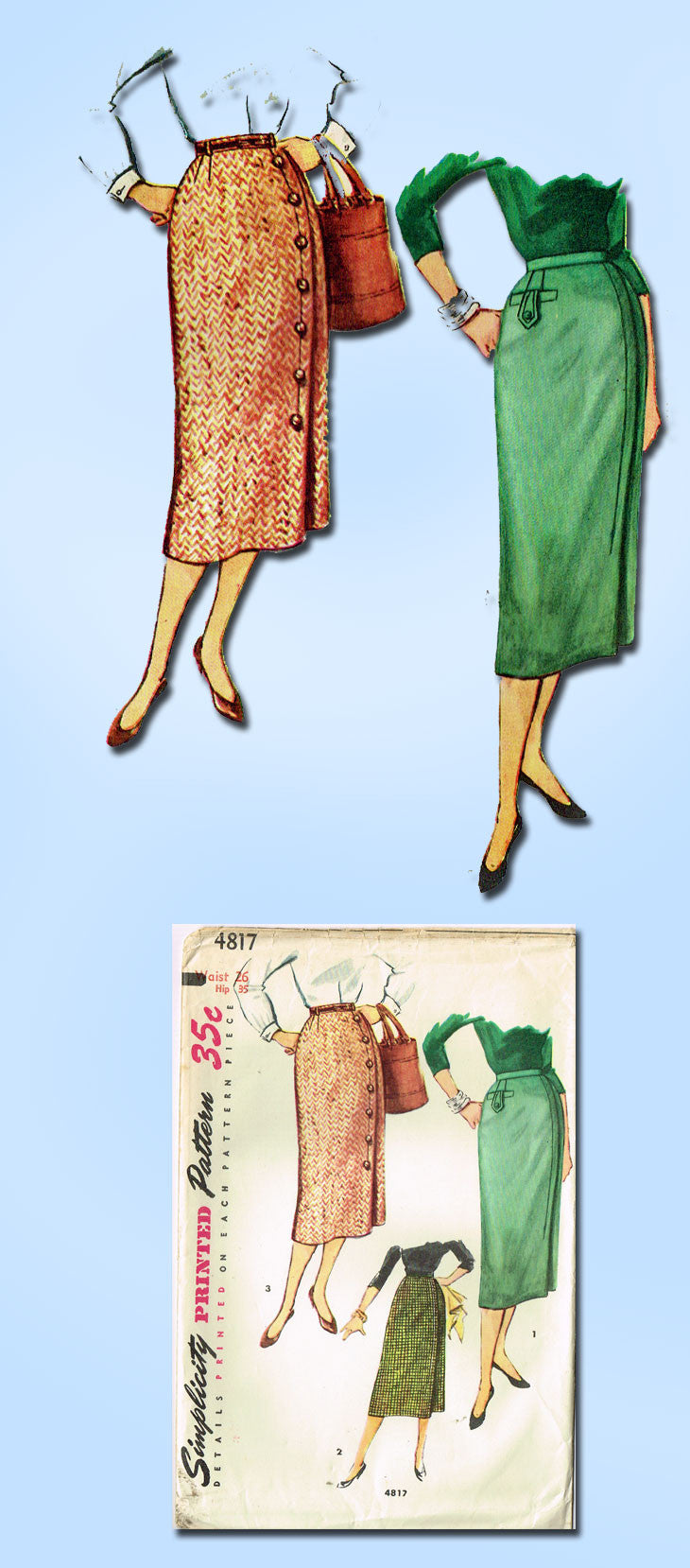 1950s Vintage Simplicity Sewing Pattern 4817 Uncut Misses Slender Skirt Sz 26 W