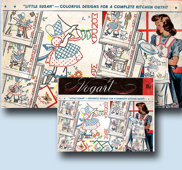 1950s Vintage Vogart Embroidery Transfer 105 Uncut Sunbonnet Sue DOW Tea Towels