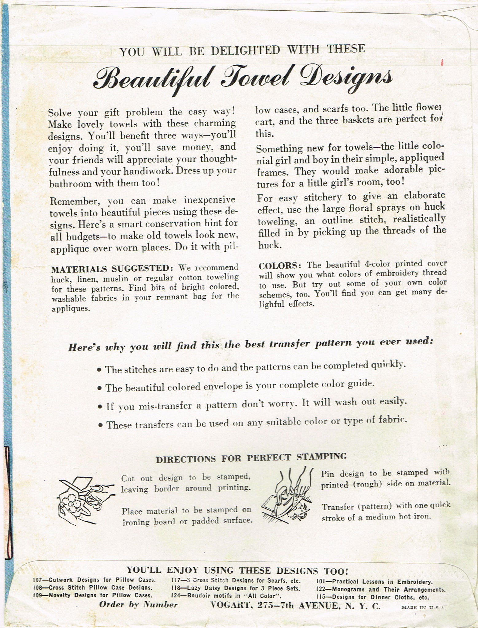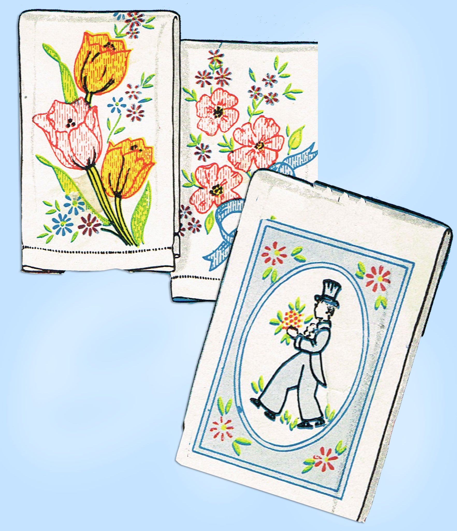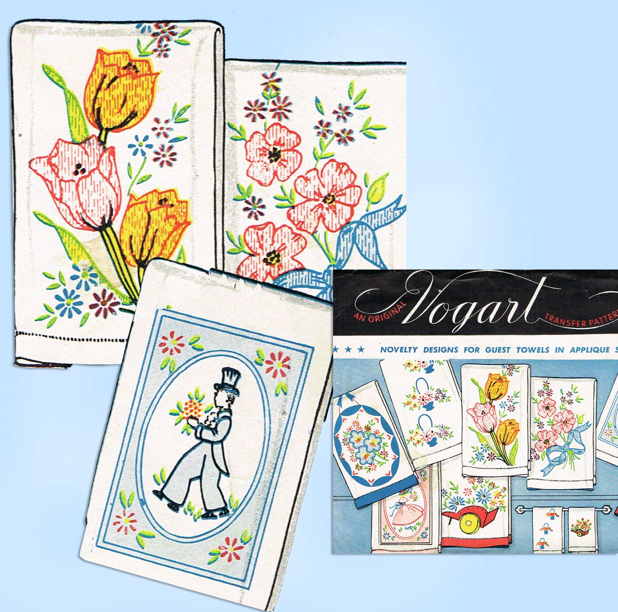 1950s Vintage Vogart Embroidery Transfer 121 Uncut Novelty Guest Towel Motifs