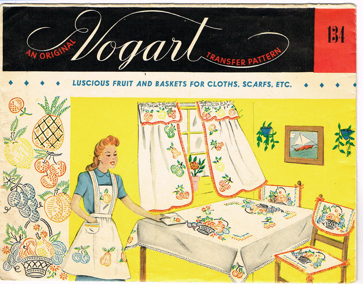 1950s Vintage Vogart Embroidery Transfer 134 Uncut Fruit Basket Kitchen Motifs