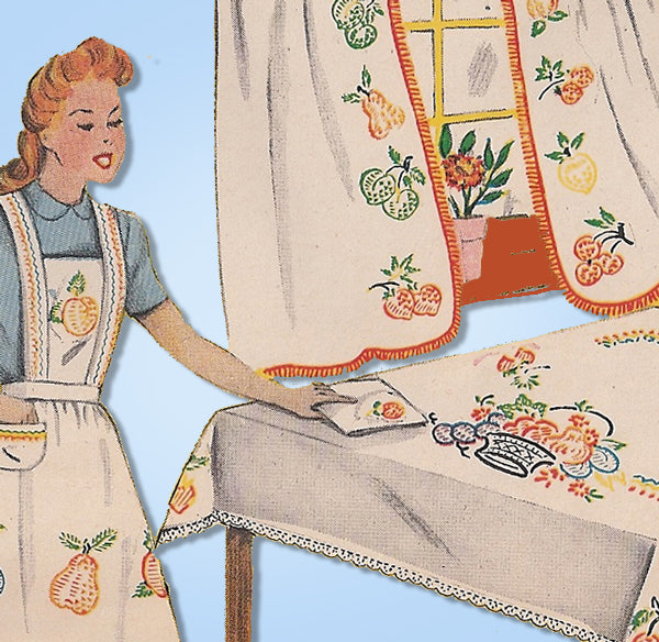 This is a wonderful vintage mail order pattern from Vogart in the 1950s. This cute set has mixed motifs that are great for the kitchen, breakfast nook or sun room. This one is uncut and unused and still in the factory folds. It comes with the original envelope from the 1950s.