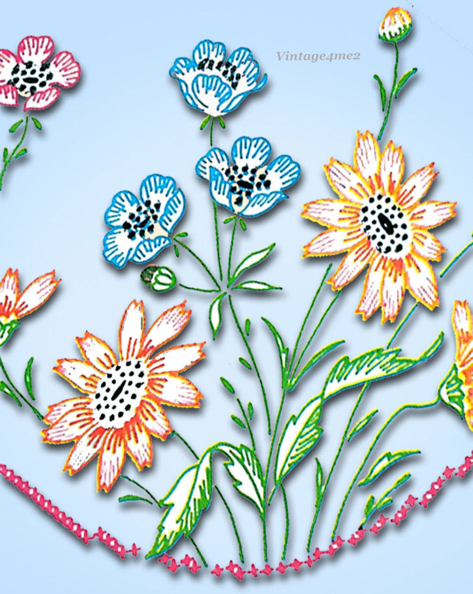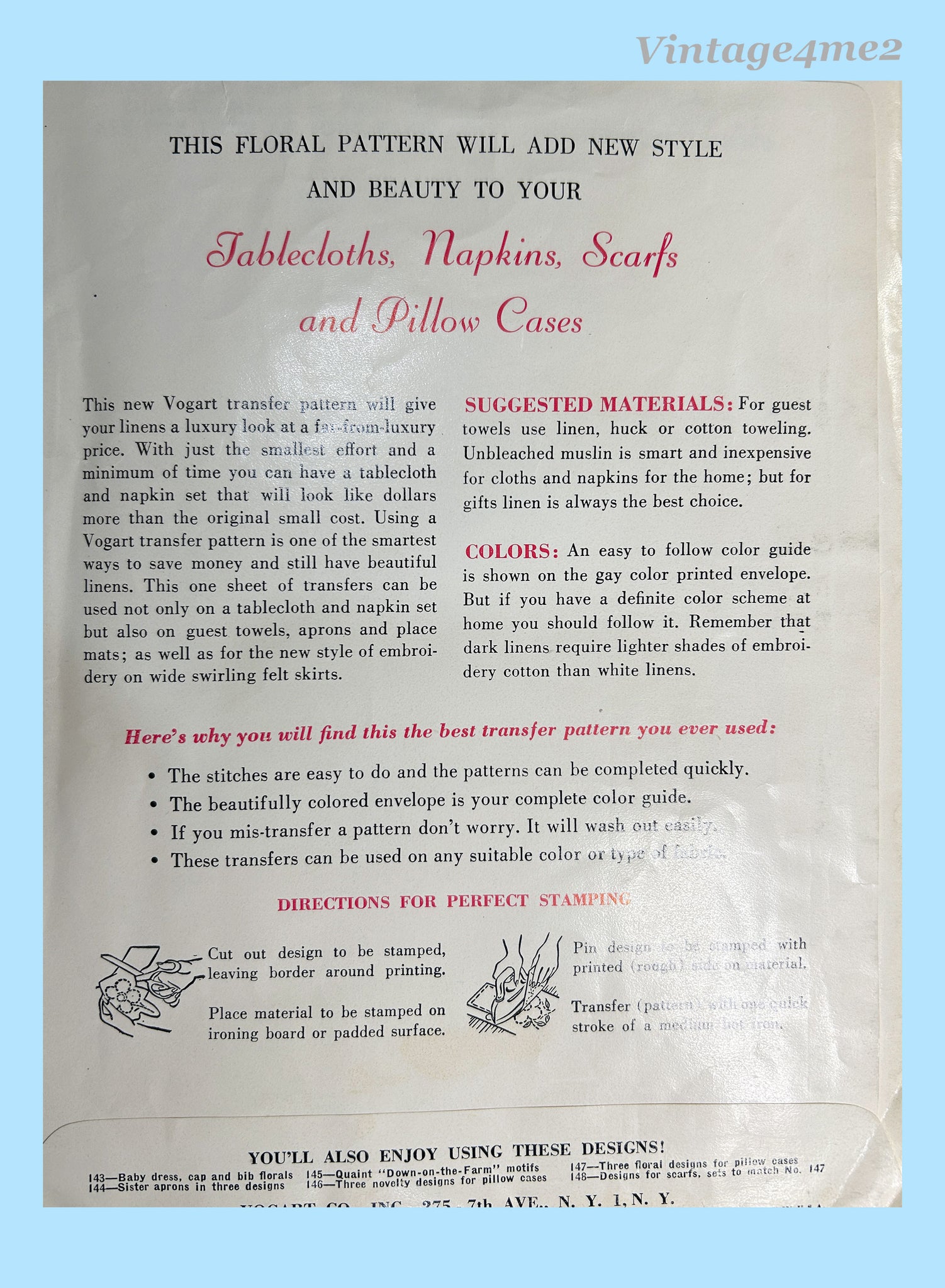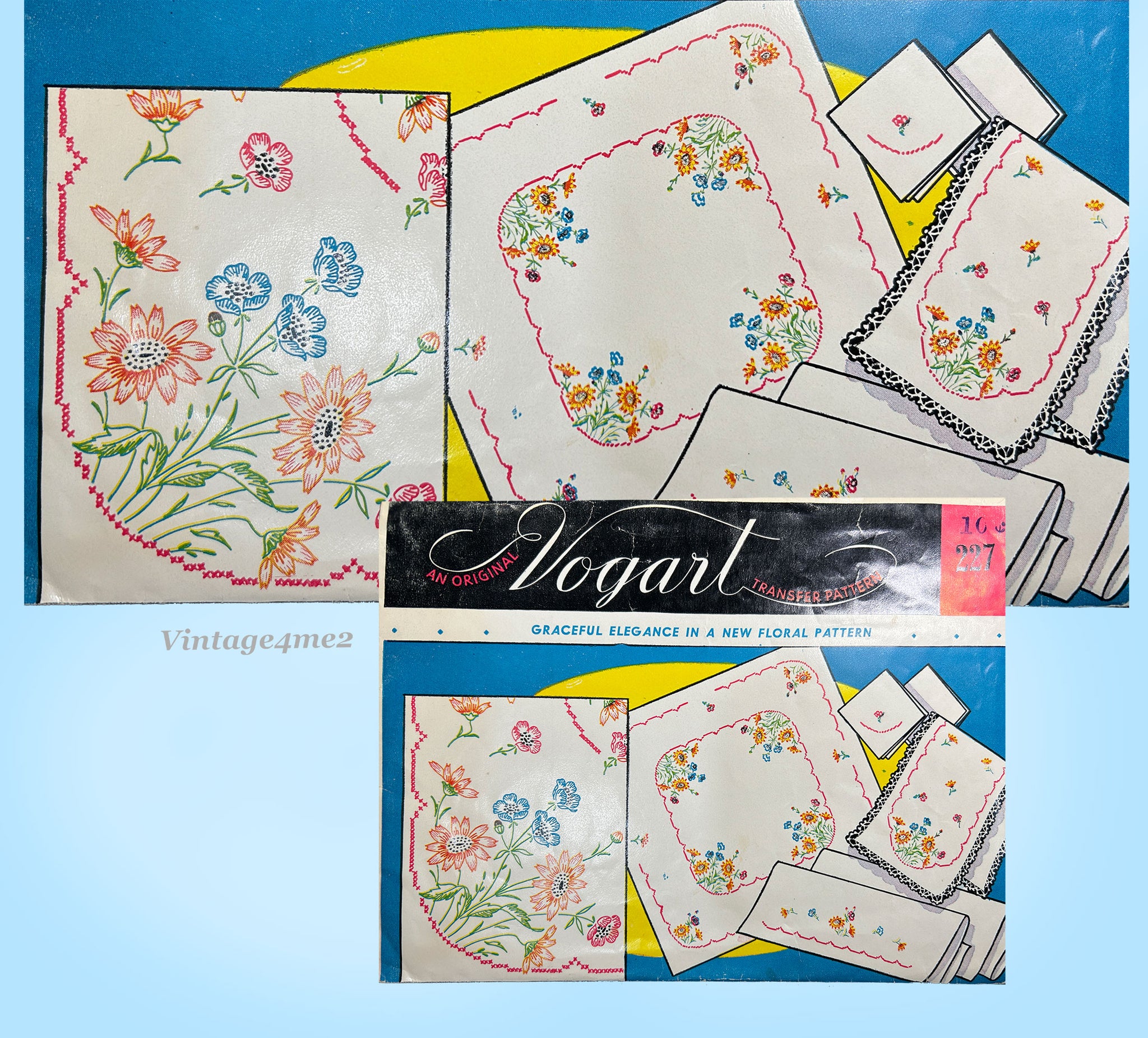 1950s Vintage Vogart Embroidery Transfer 227 Uncut Floral Table Cloth & Runner