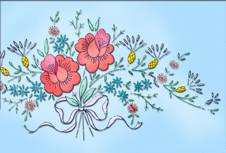 1950s Vintage Vogart Embroidery Transfer 279 Uncut Floral Pillowcase Motifs