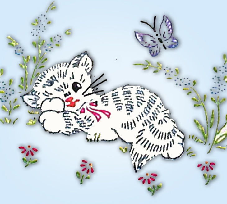 1950s Vintage Vogart Embroidery Transfer 291 Uncut Sleeping Kitten Pillowcases