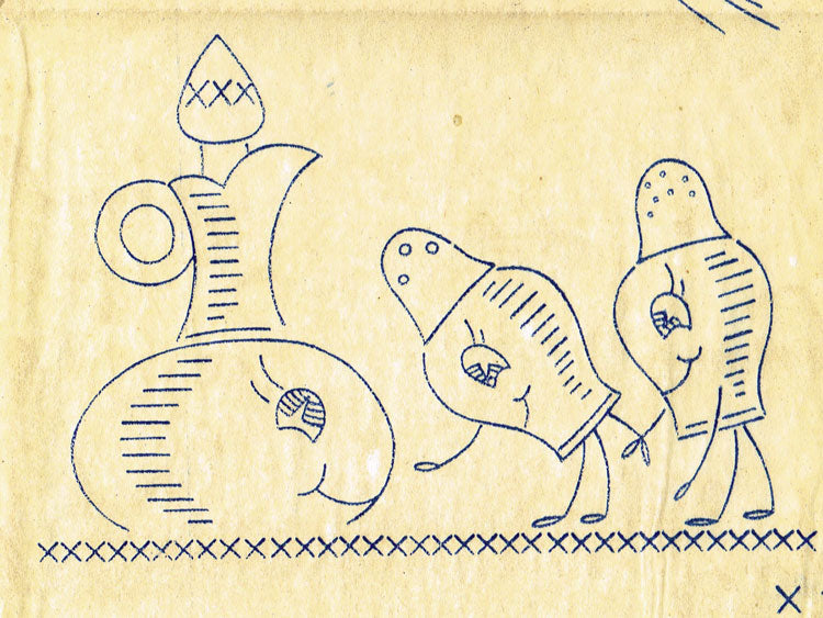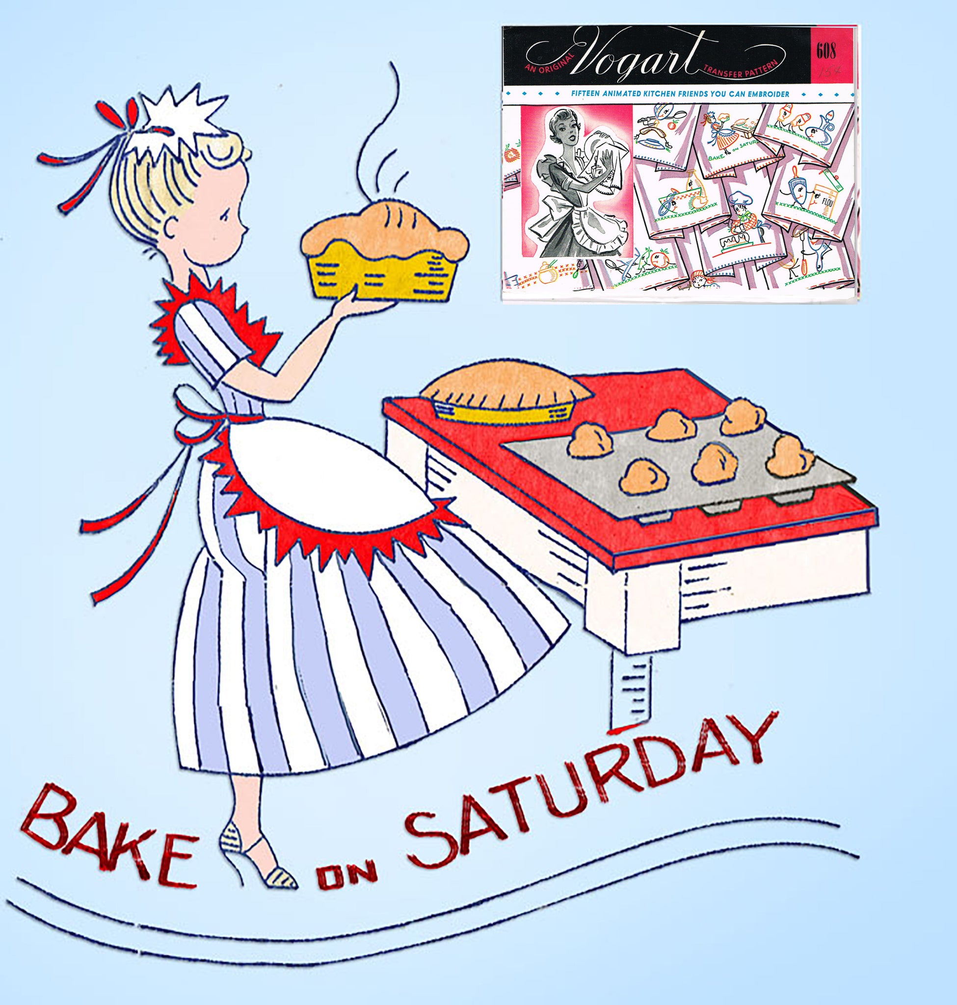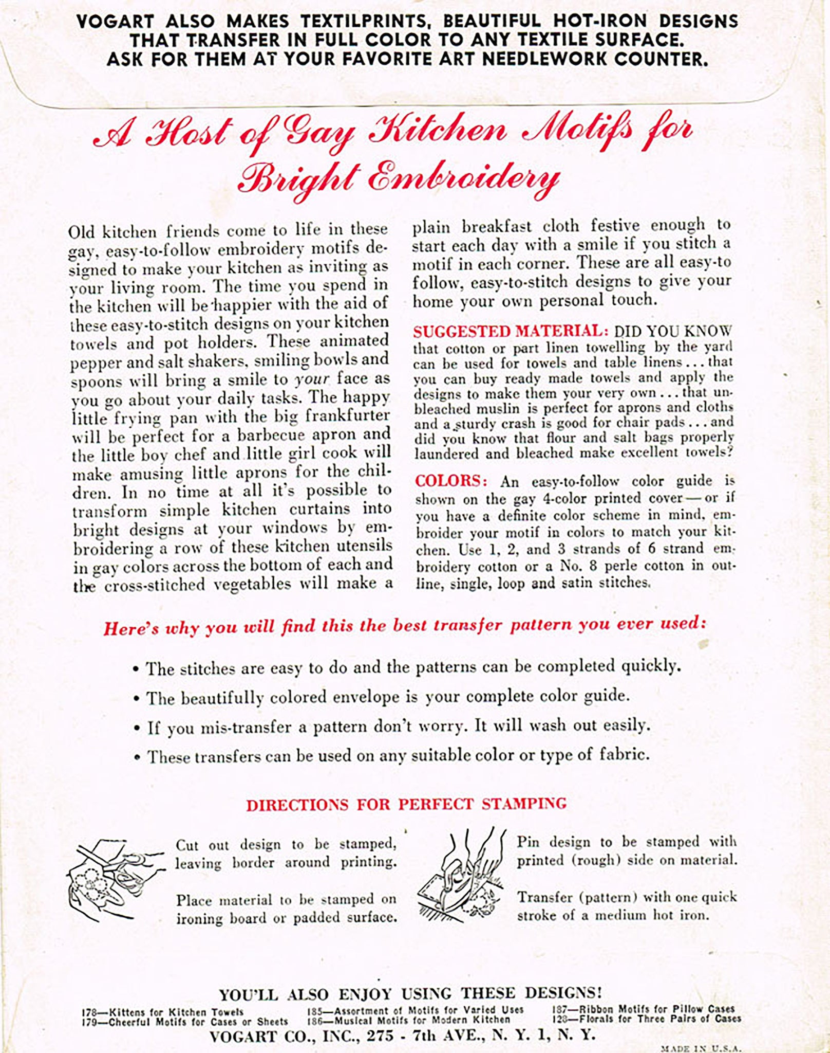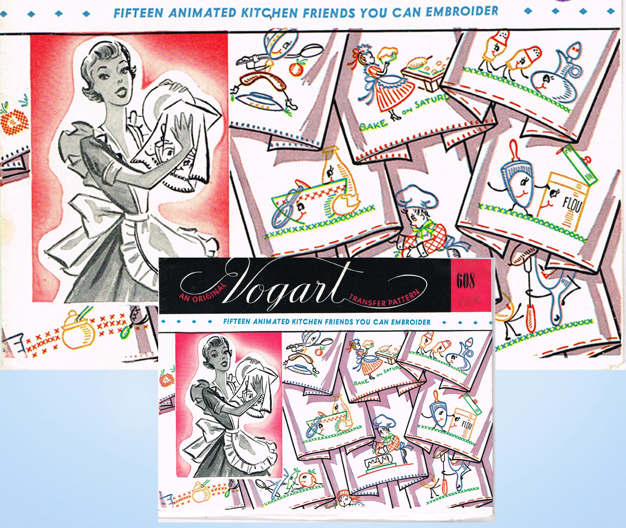 1950s Vintage Vogart Embroidery Transfer 608 Anthro Dishes & Maid and Chef Tea Towels
