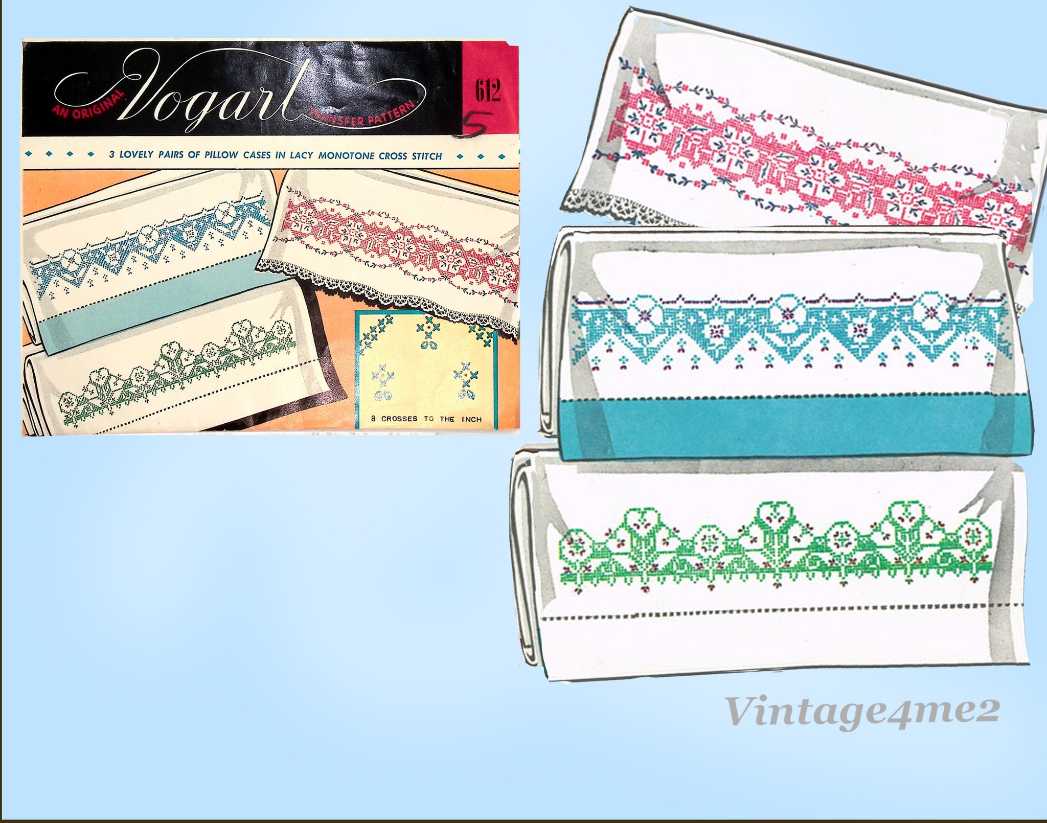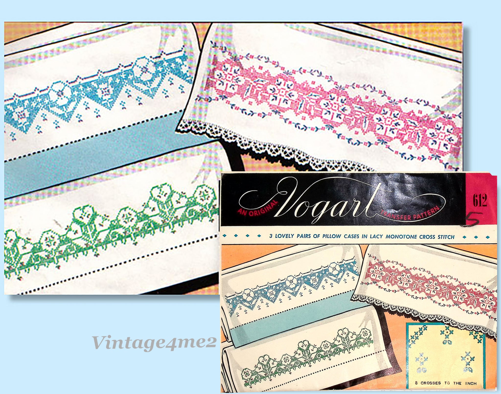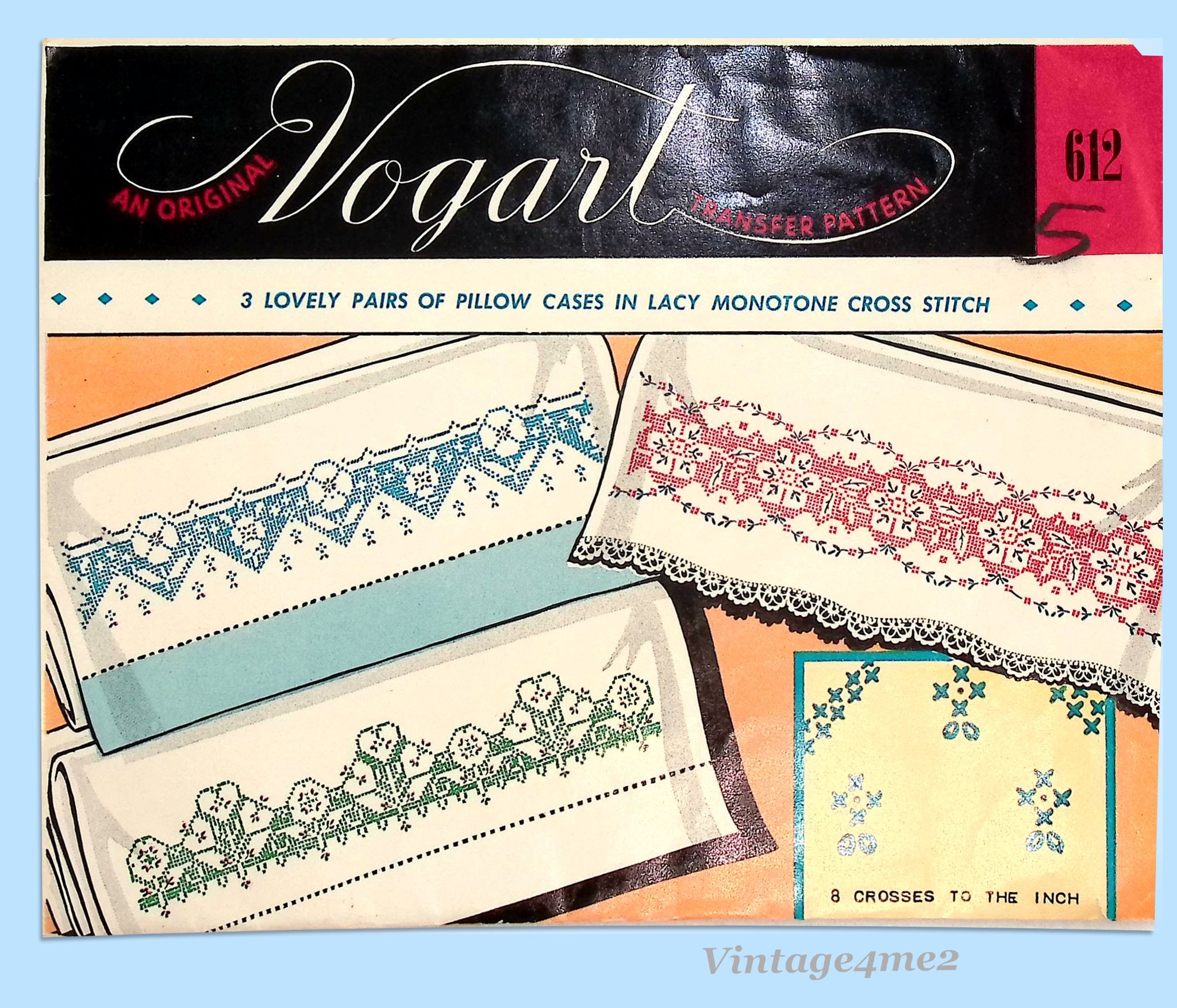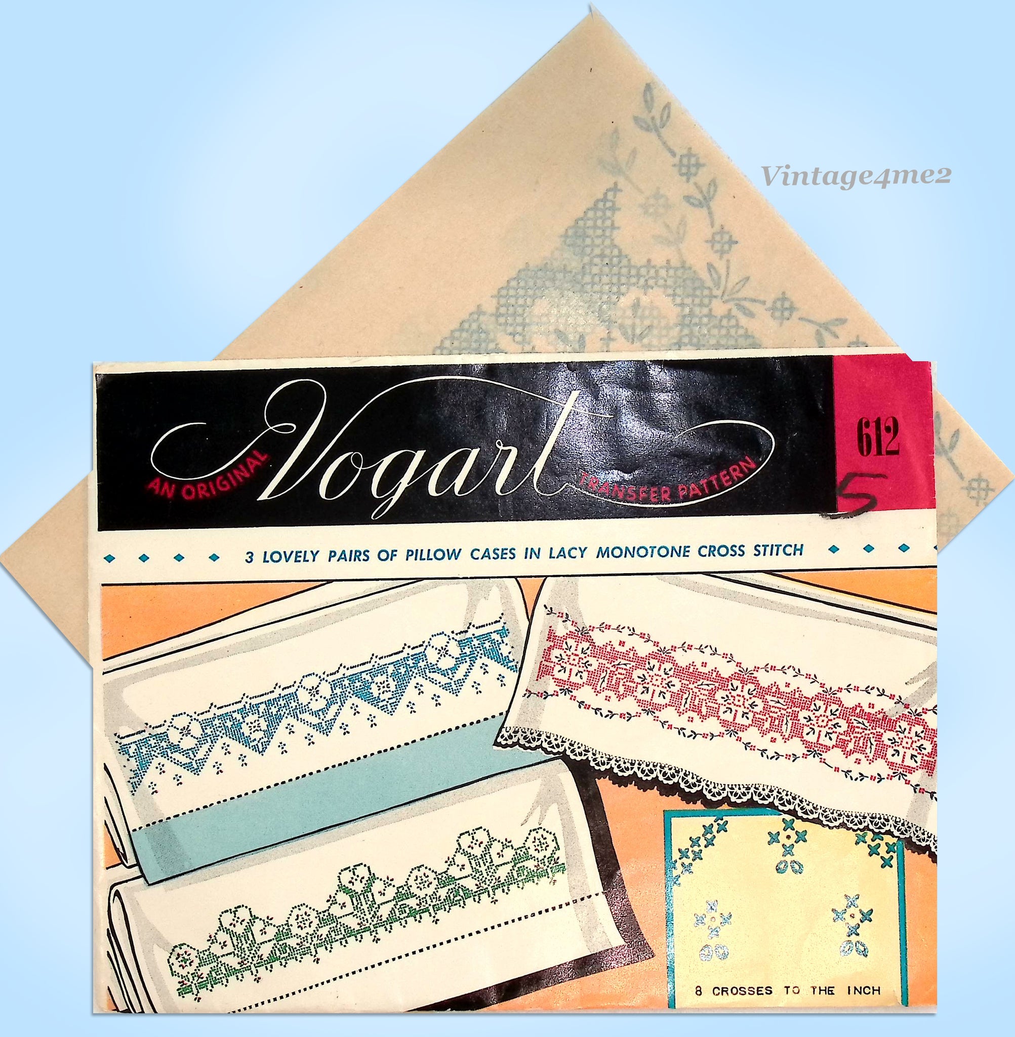 1950s Vintage Vogart Embroidery Transfer 612 Uncut Cross Stitch Pillowcase Motif