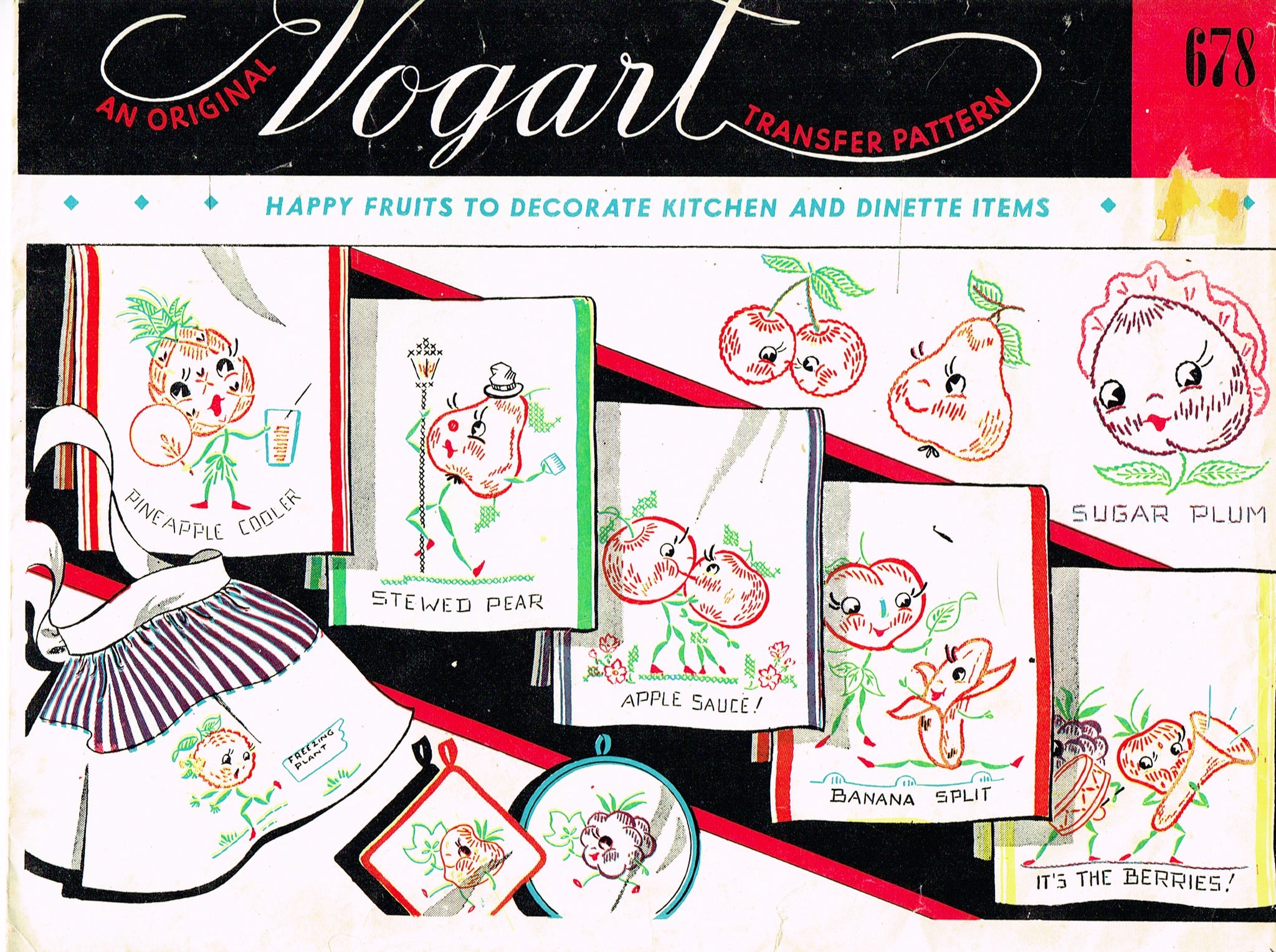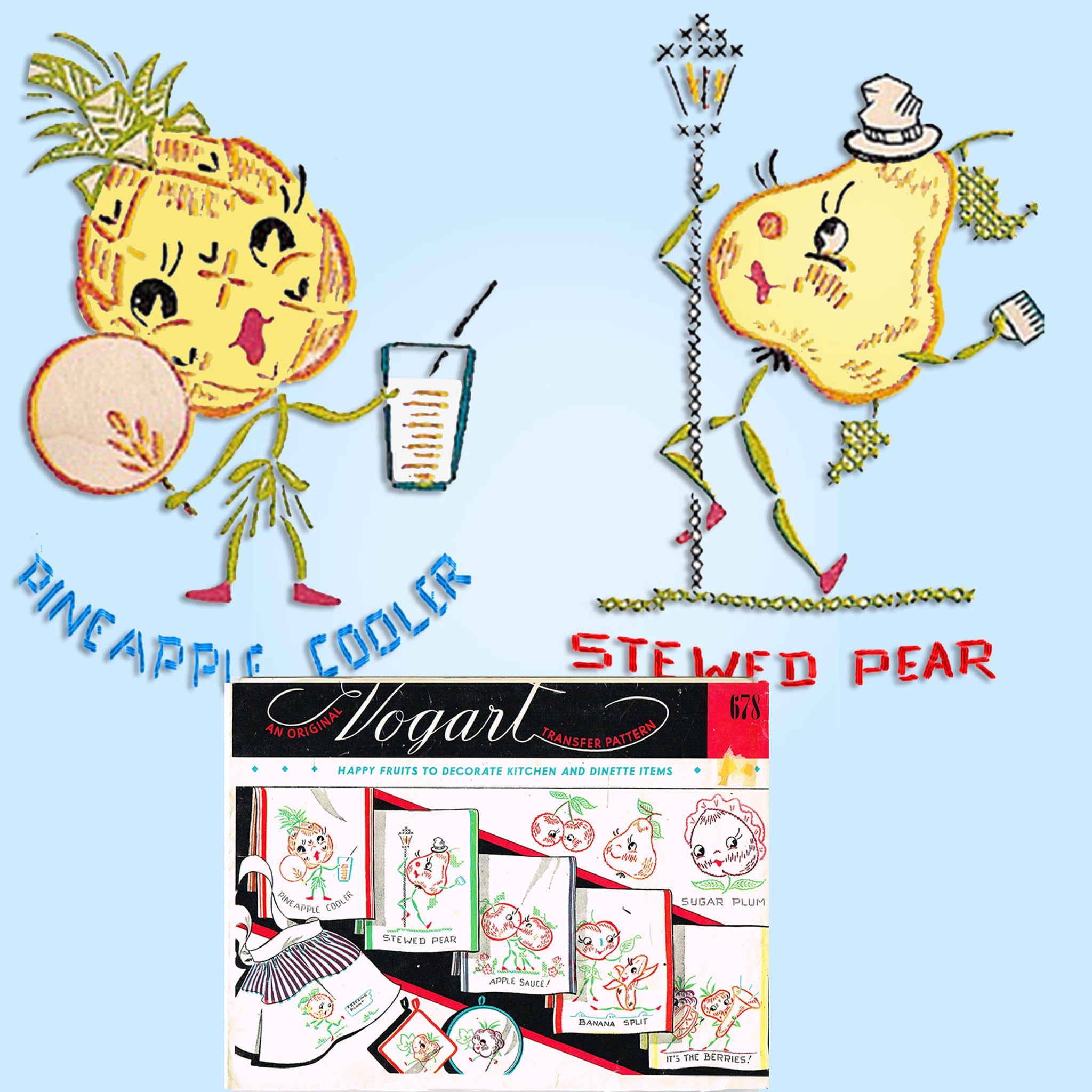 1950s Vintage Vogart Embroidery Transfer 678 Uncut Anthro Fruit Tea Towels