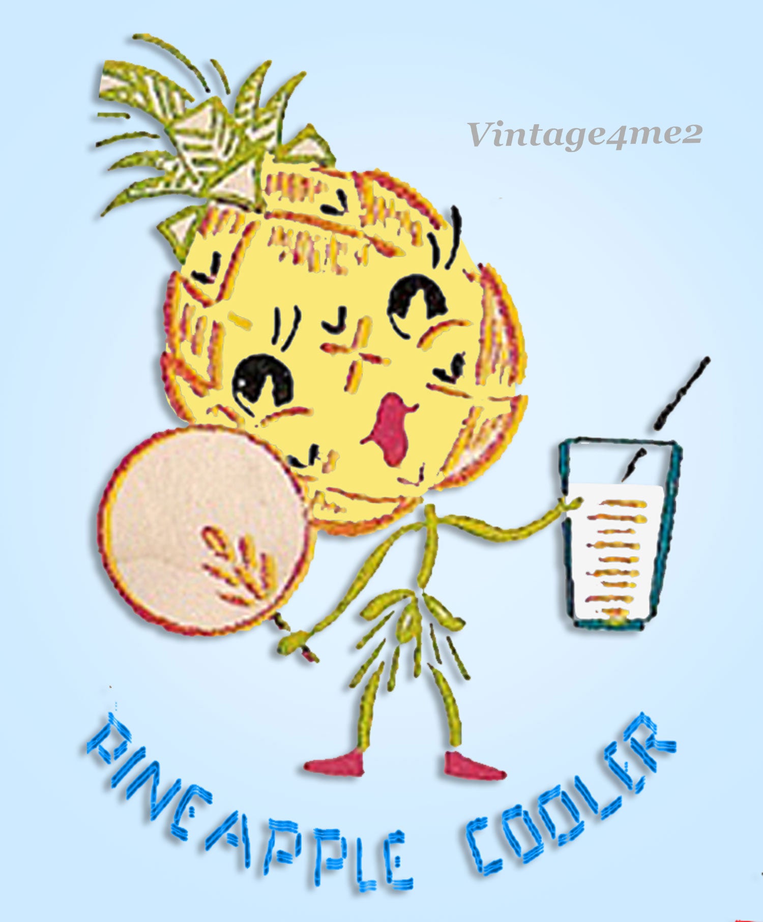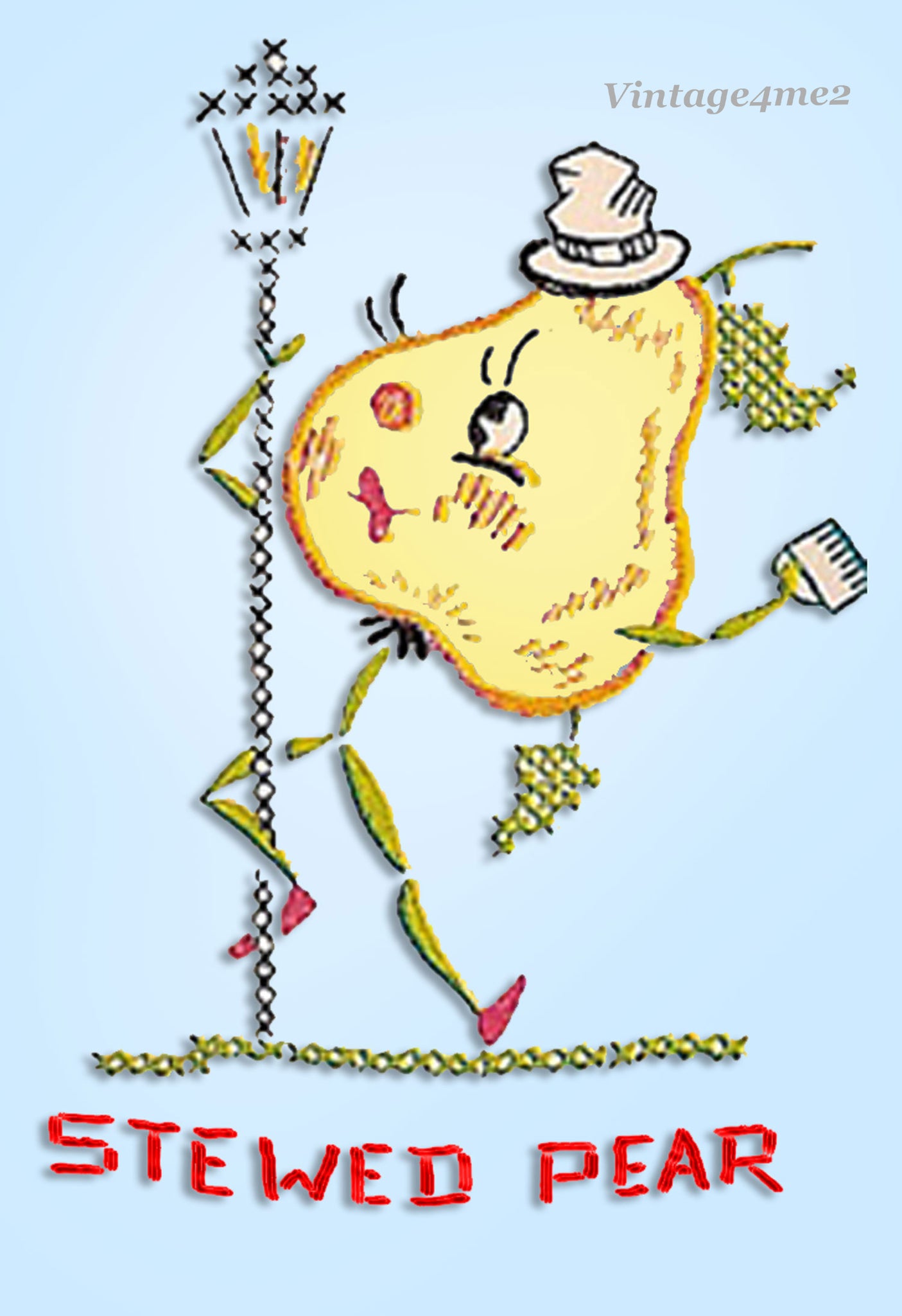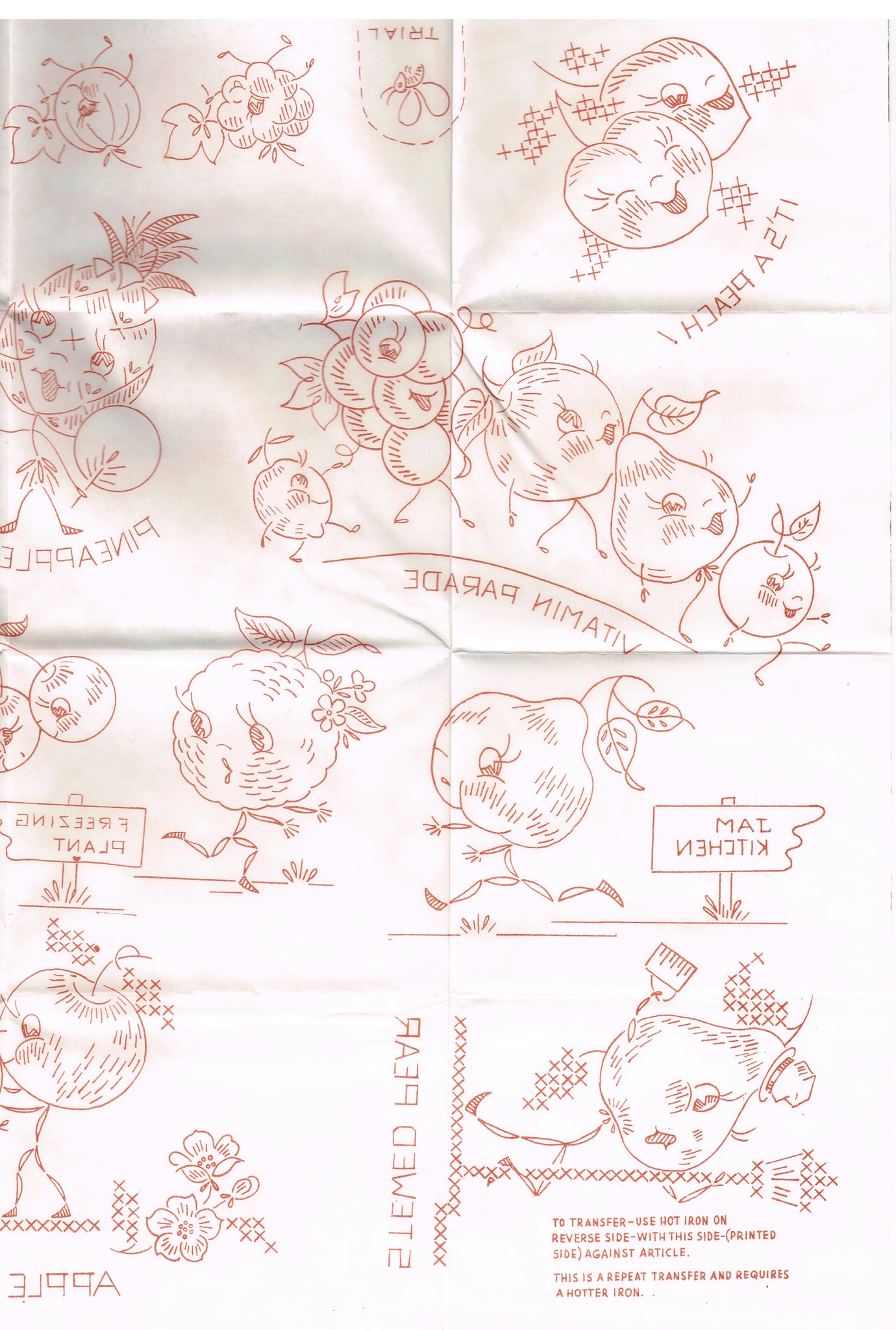 This is a very cute transfer from Vogart in the 1960s. This transfer the cutest anthropomorphic fruit motifs with expressions like "apple sauce" and "sugar plums".  It is factory folded and unused and comes in the original 1950s envelope with black top band.