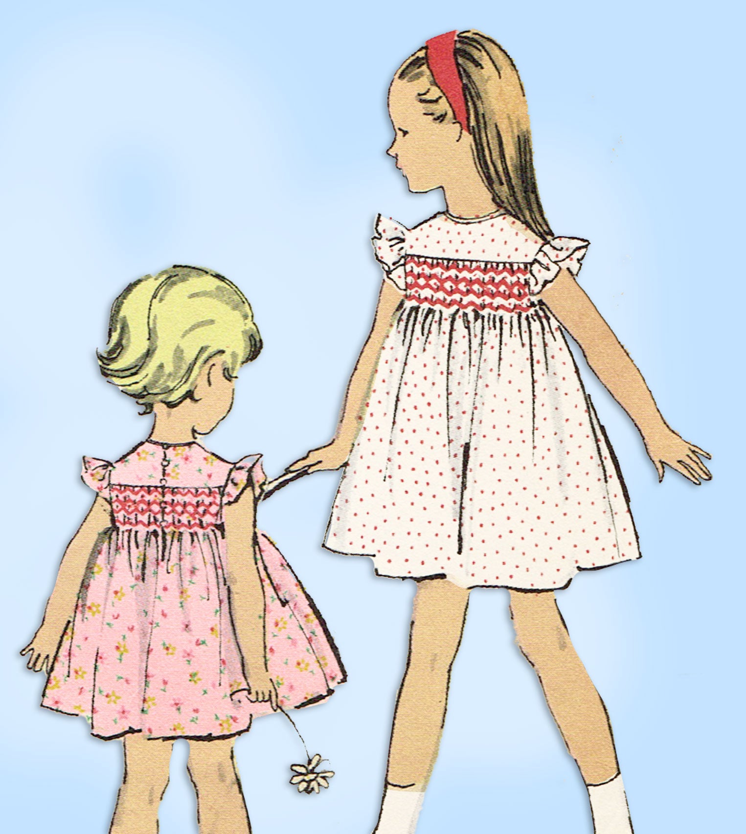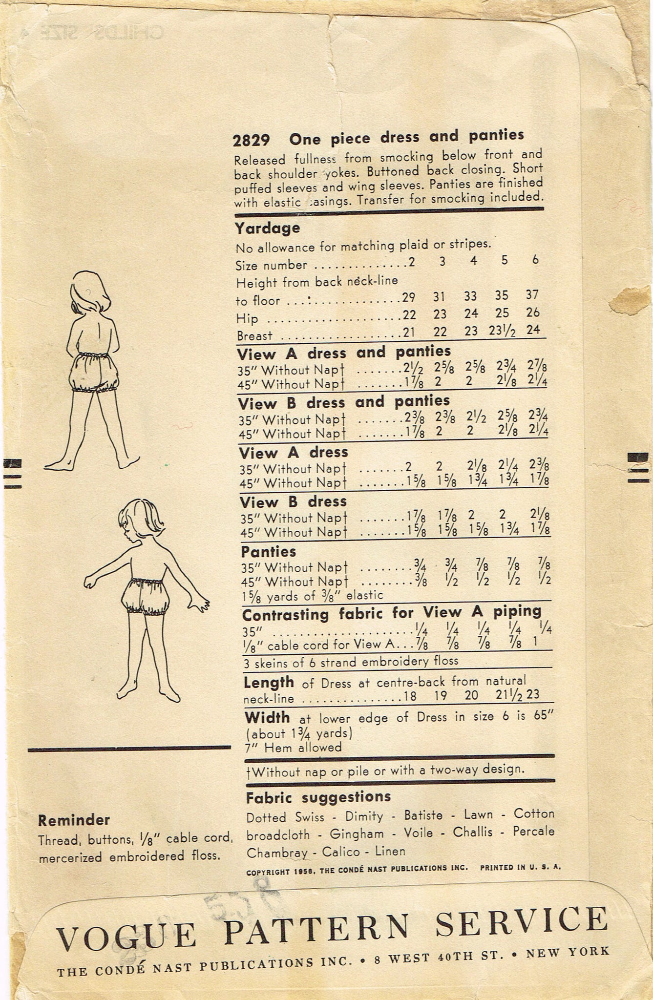 1950s Vintage Vogue Sewing Pattern 2829 Cute Toddler Girls Smocked Dress Sz 4