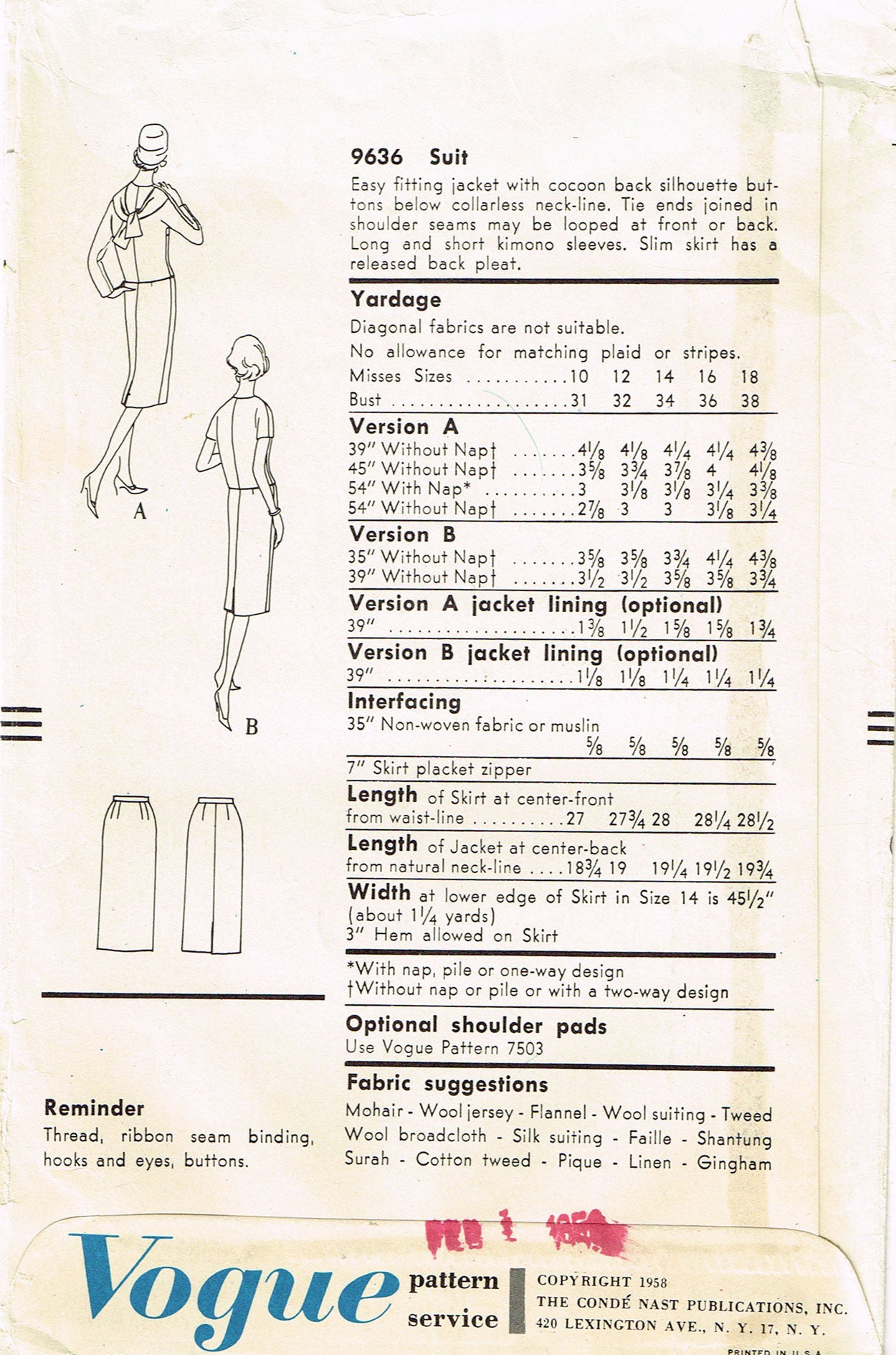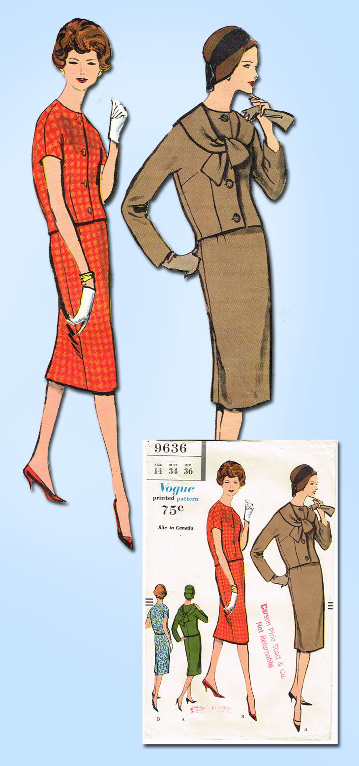 1950s Vintage Vogue Sewing Pattern 9636 Midcentury Modern Misses Suit Sz 14 34B