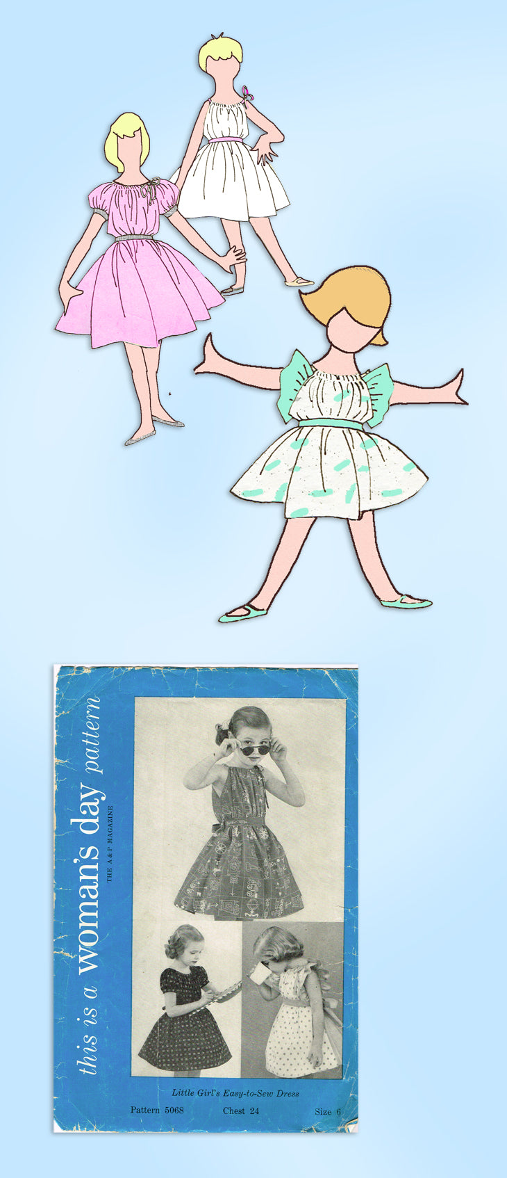 1950s Vintage Woman's Day Sewing Pattern 5068 Easy Toddler Girls Sun Dress Sz 6