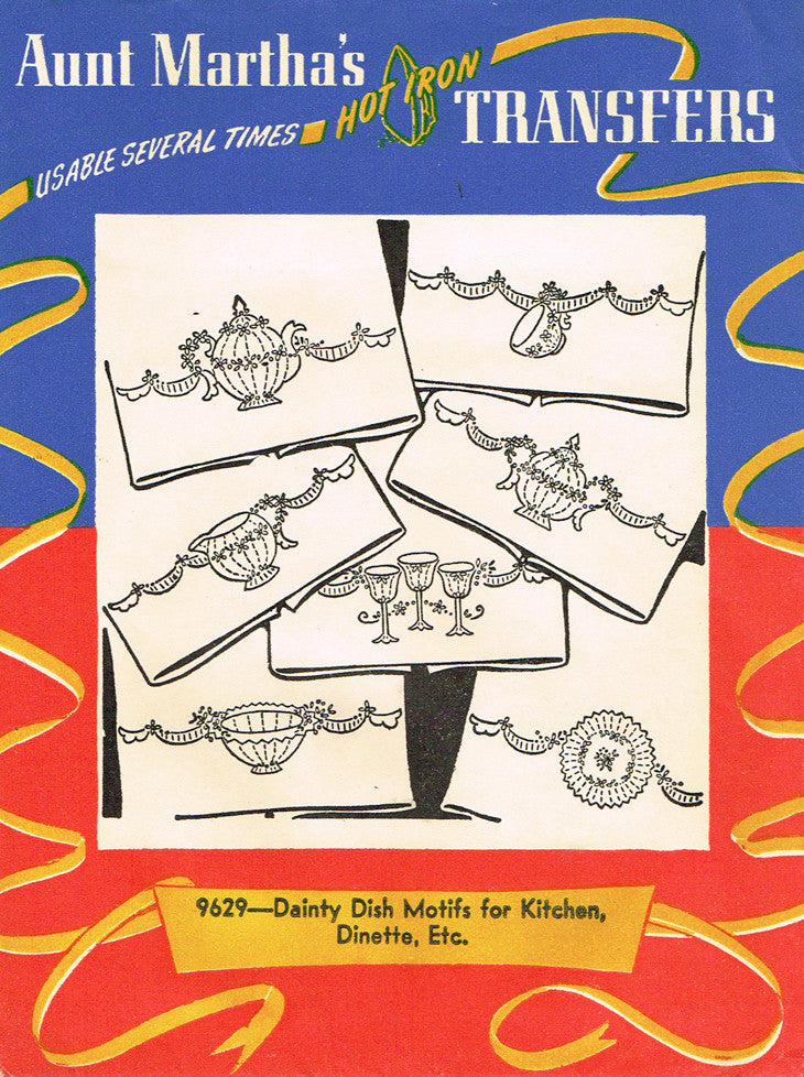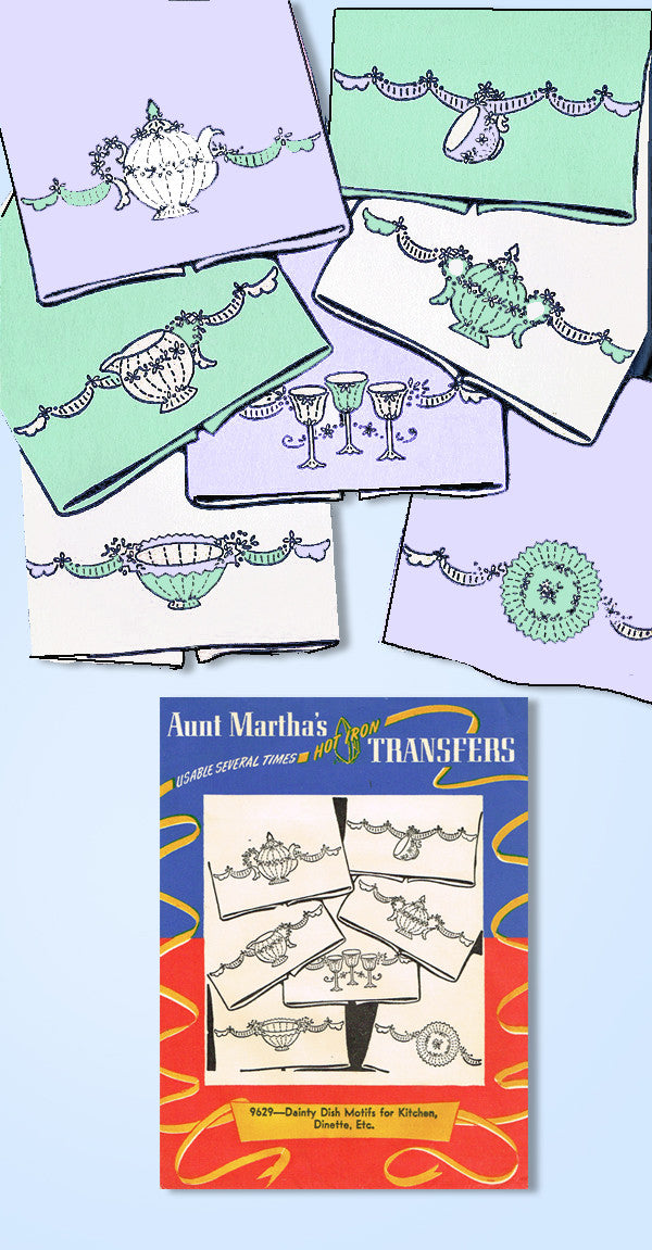 1950s VTG Aunt Martha's Embroidery Transfer 9629 Uncut Dish Motif Tea Towels