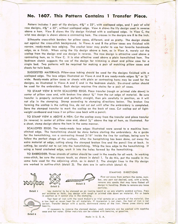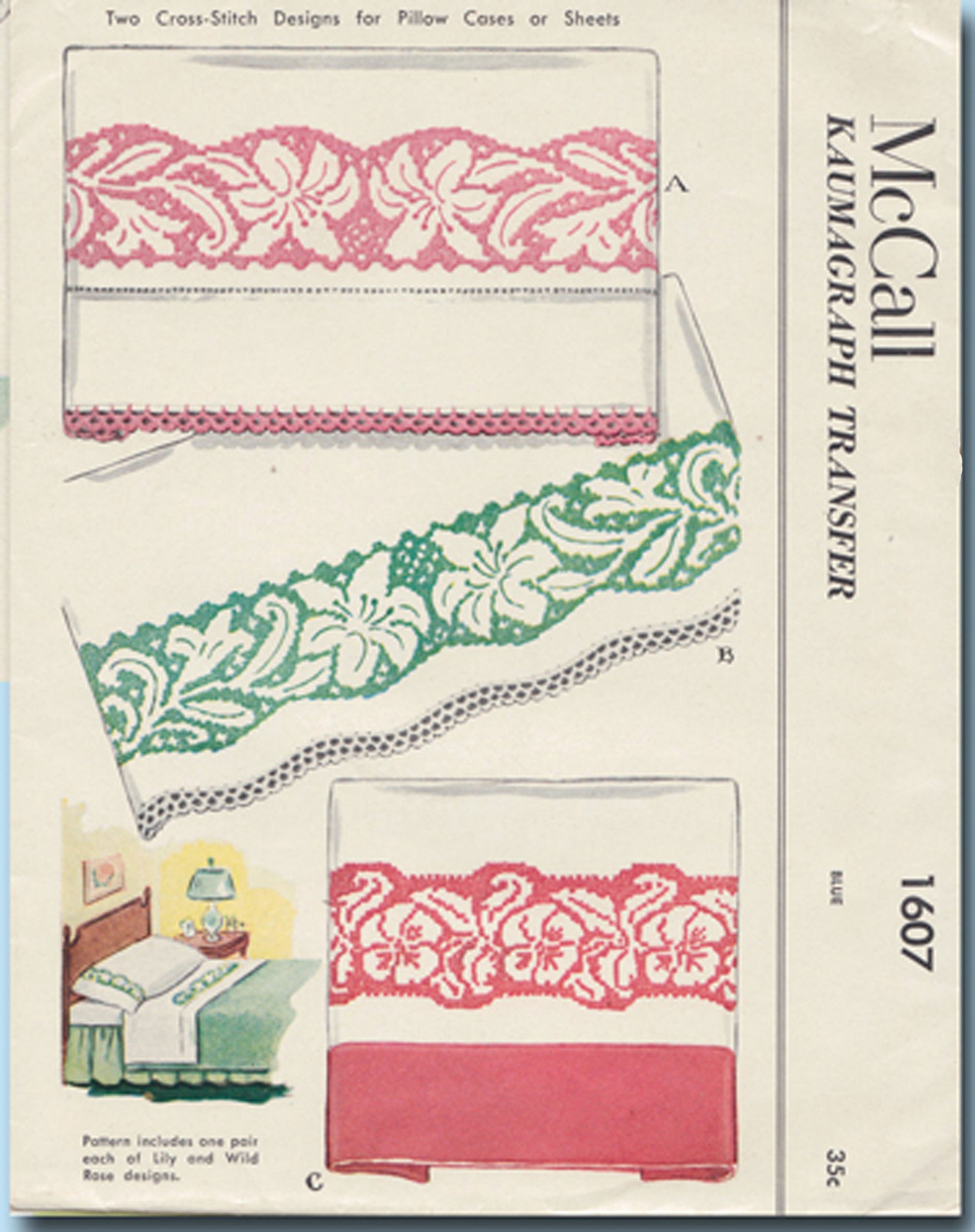 1950s VTG McCall Embroidery Transfer 1607 Uncut X-Stitch Floral Pillowcases