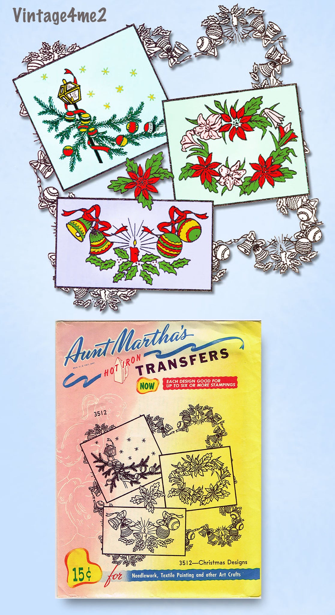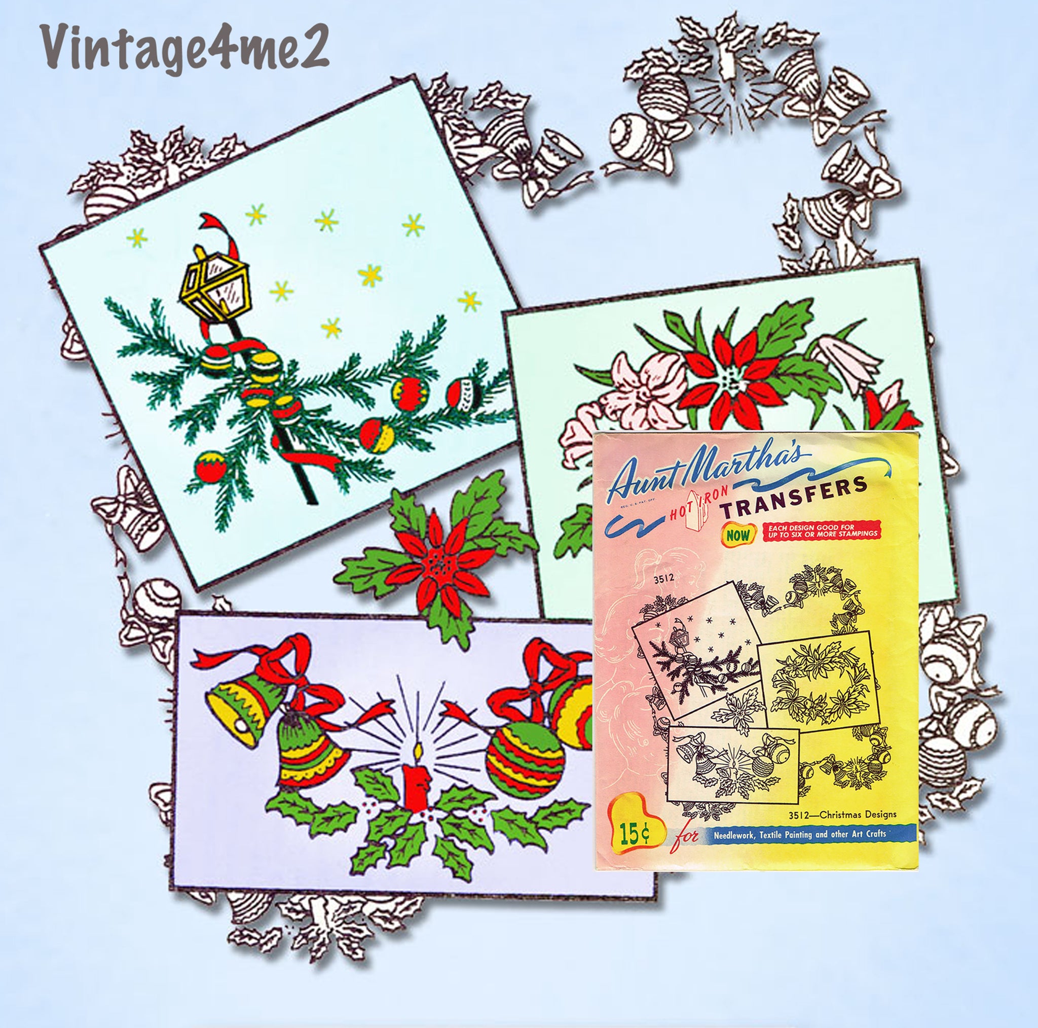 1960s Uncut Aunt Martha's Embroidery Transfer 3512 Christmas Motifs 4 Placemats