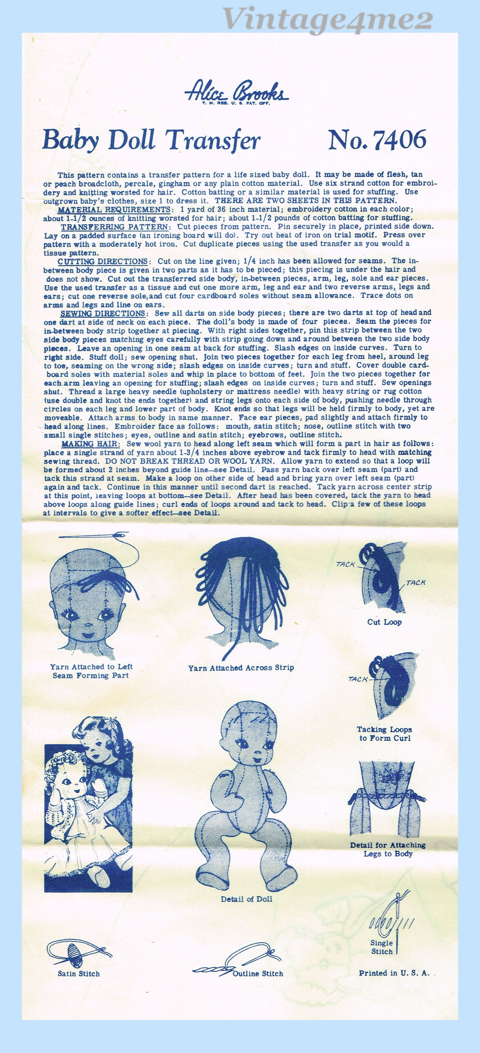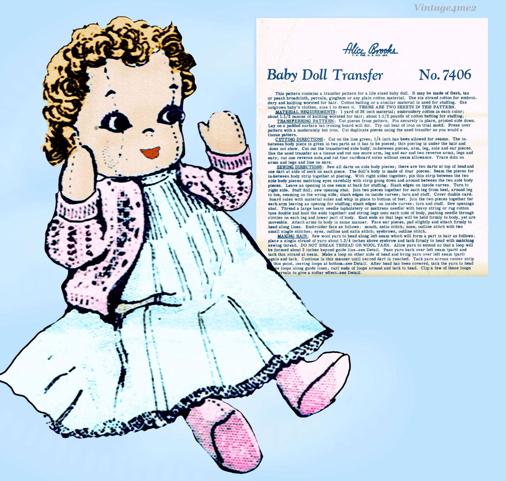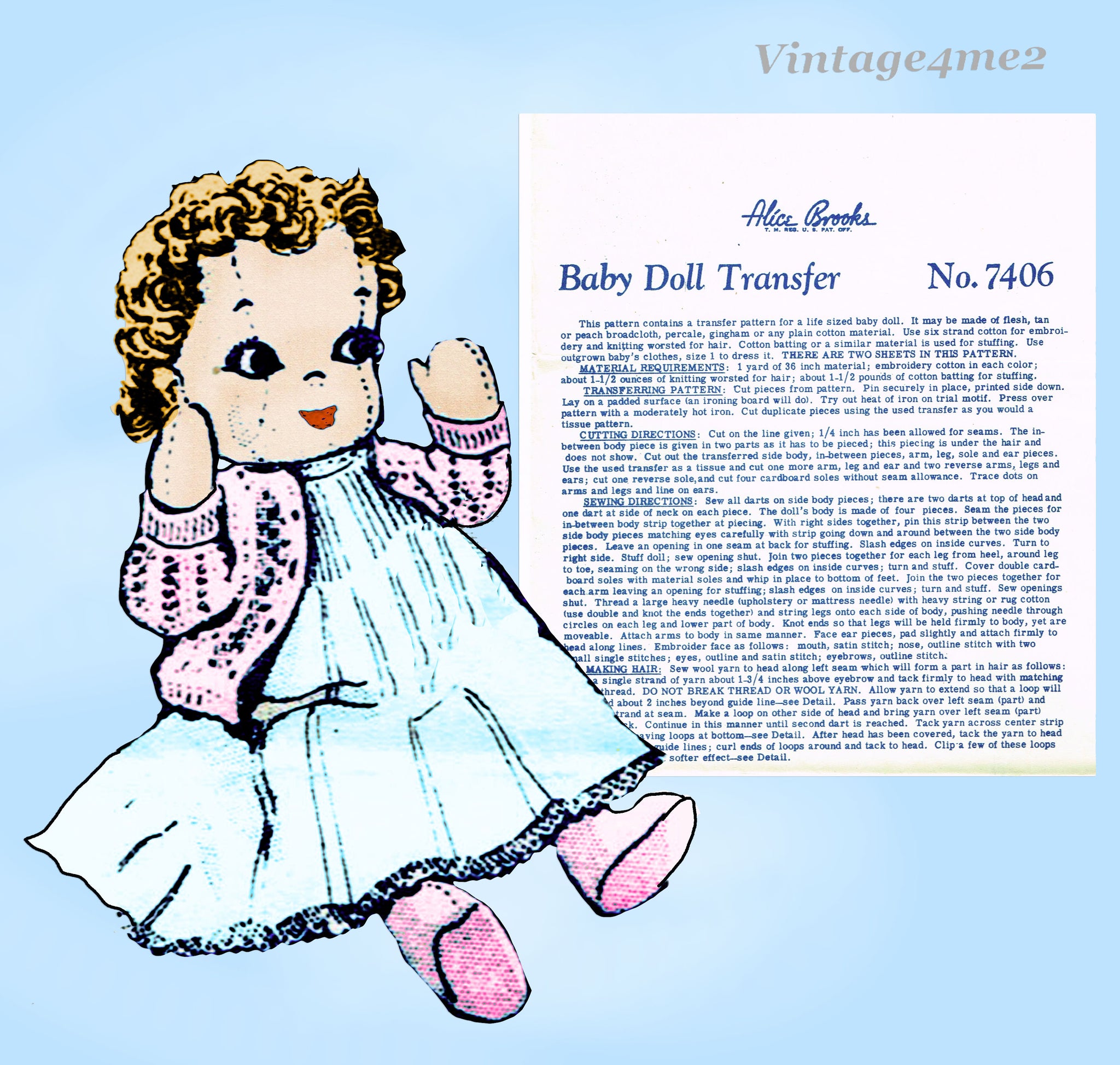 1960s Vintage Alice Brooks Sewing Pattern 7406 Uncut Life Size Cloth Baby Doll