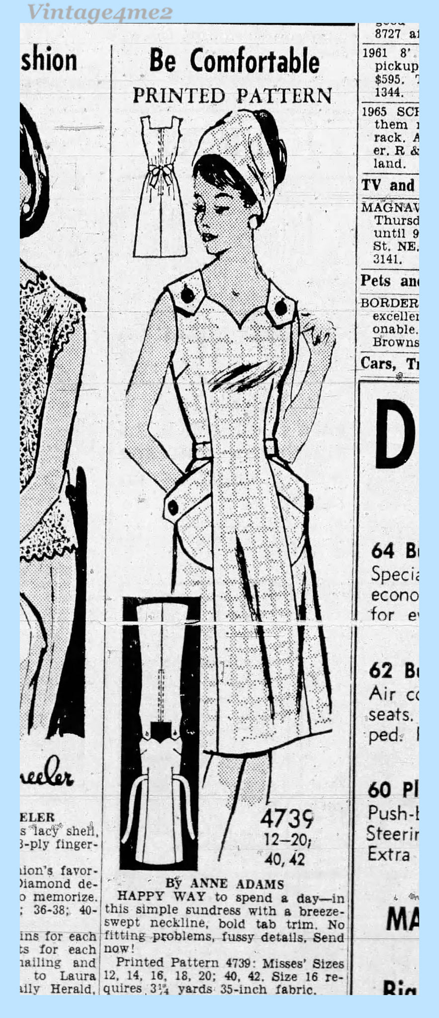 1960s Vintage Anne Adams Sewing Pattern 4739 Misses Sweetheart Sun Dress Sz 36 B