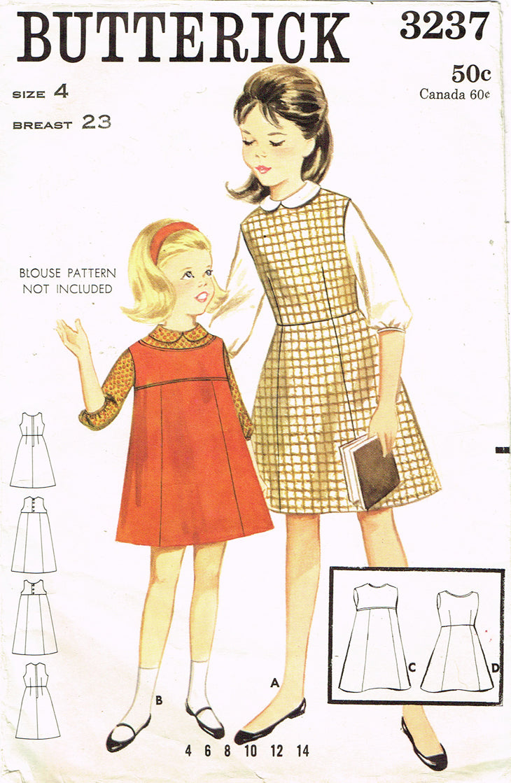 1960s Vintage Butterick Sewing Pattern 3237 Uncut Toddler Girls Jumper Dress Sz4