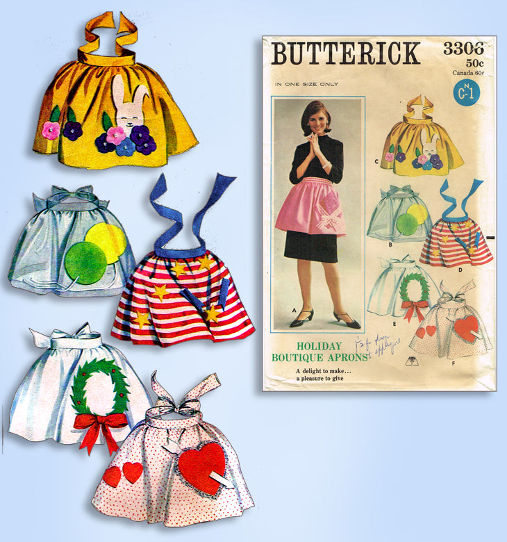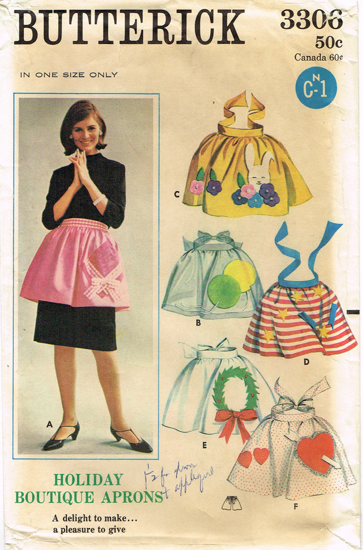 1960s Vintage Butterick Sewing Pattern 3306 Misses Holiday Apron Set Fits All