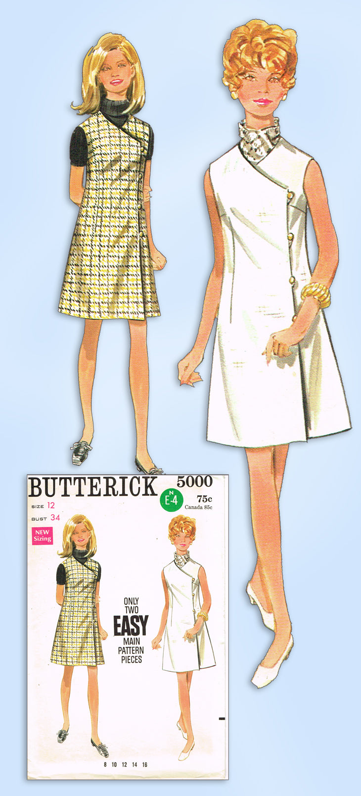1960s Vintage Butterick Sewing Pattern 5000 Easy Misses A Line Wrap Dress 34 B