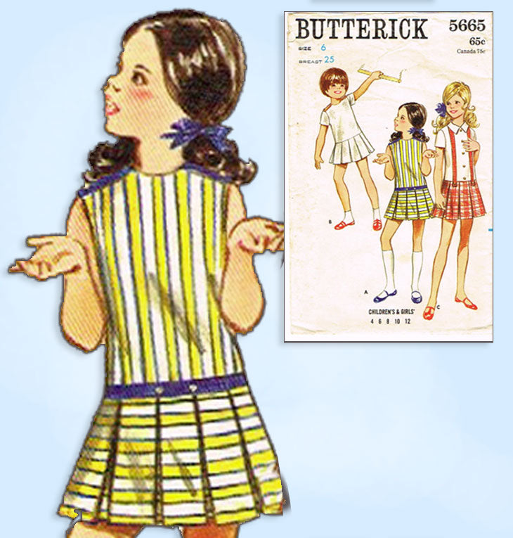 1960s Vintage Butterick Sewing Pattern 5665 Uncut Toddler Girls School Dress Sz6