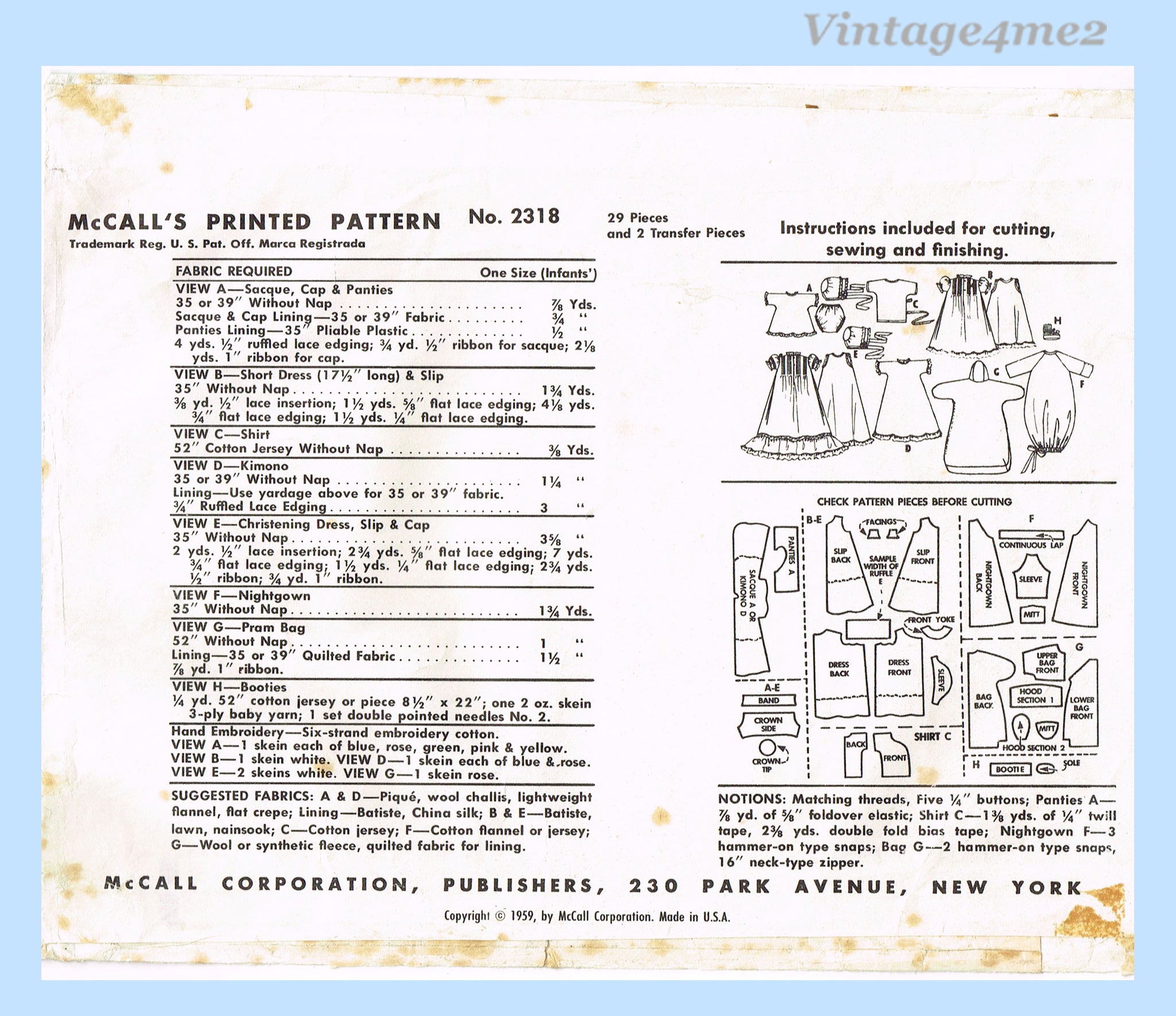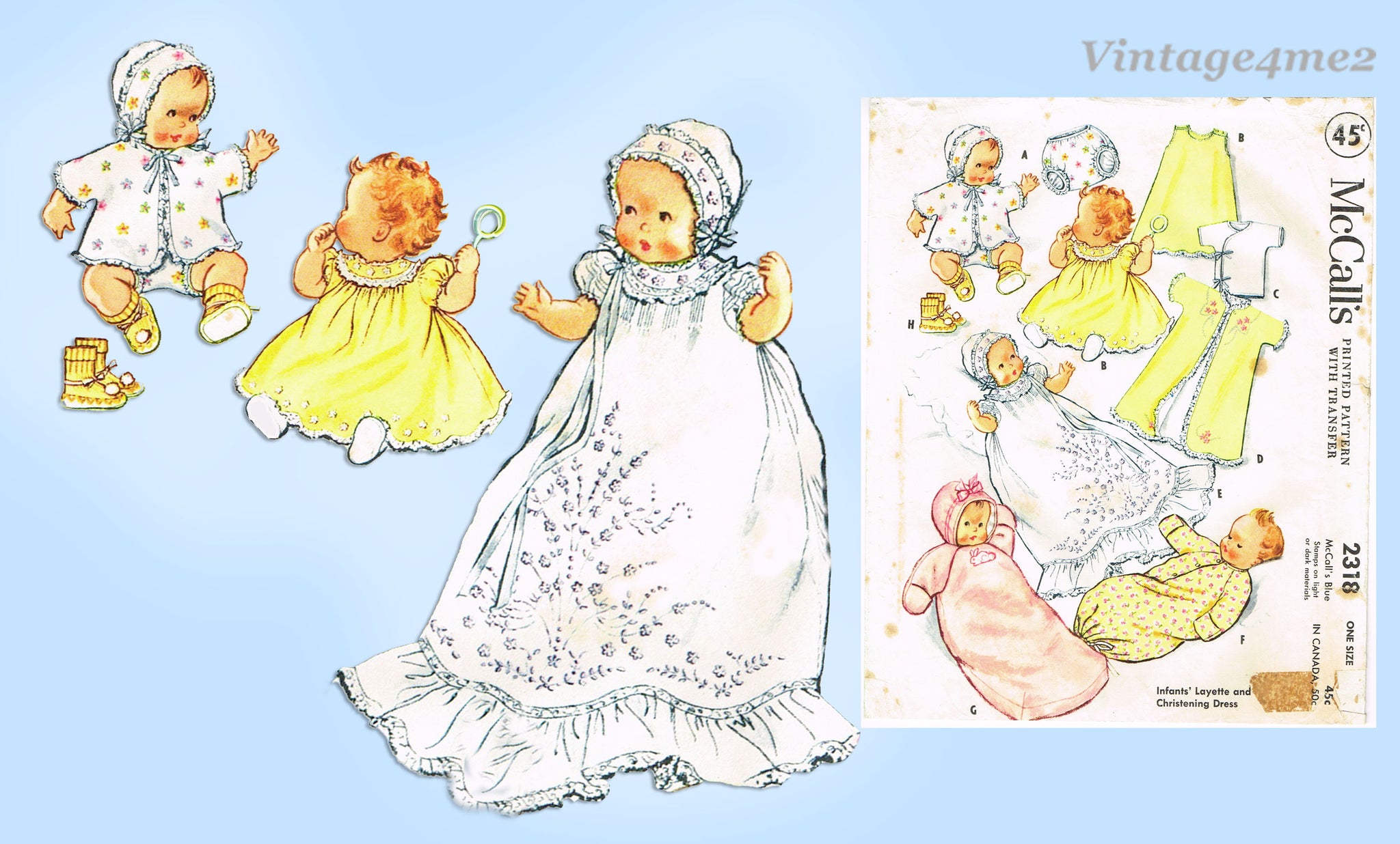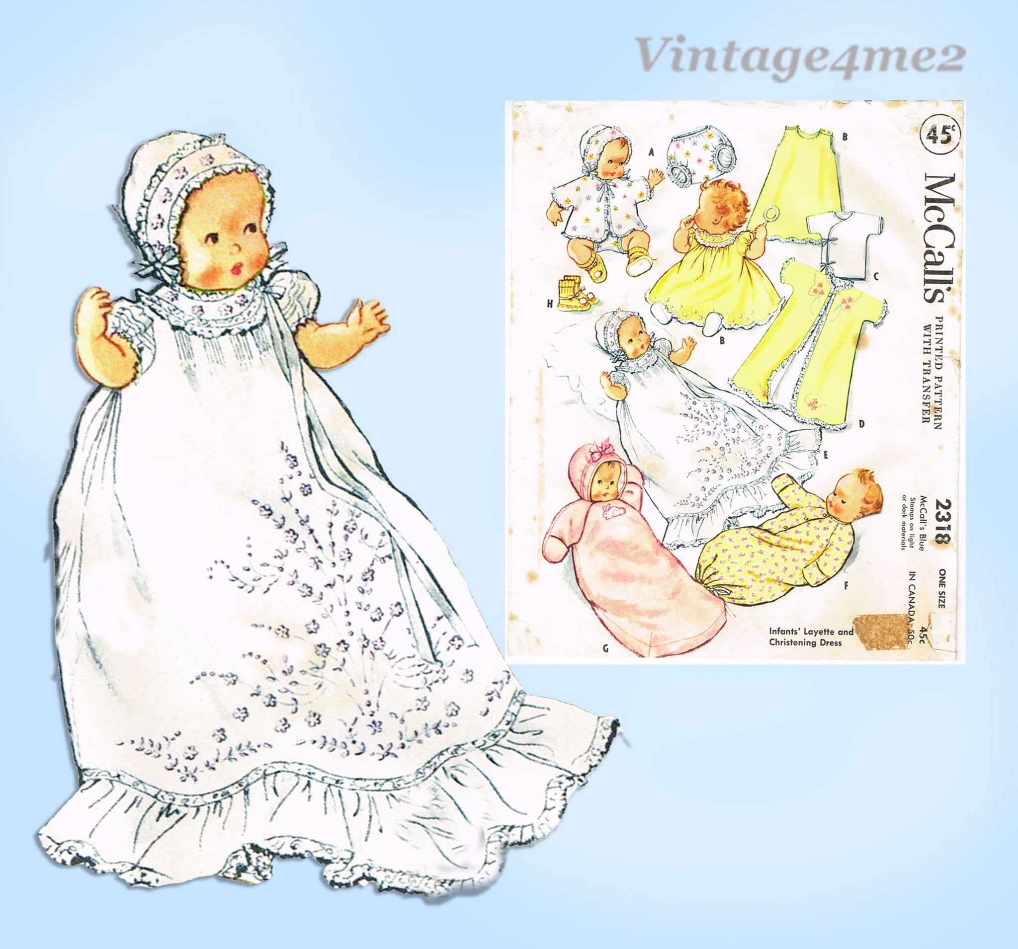 1950s Vintage McCall Sewing Pattern 2318 Baby Layette Set Christening Dress