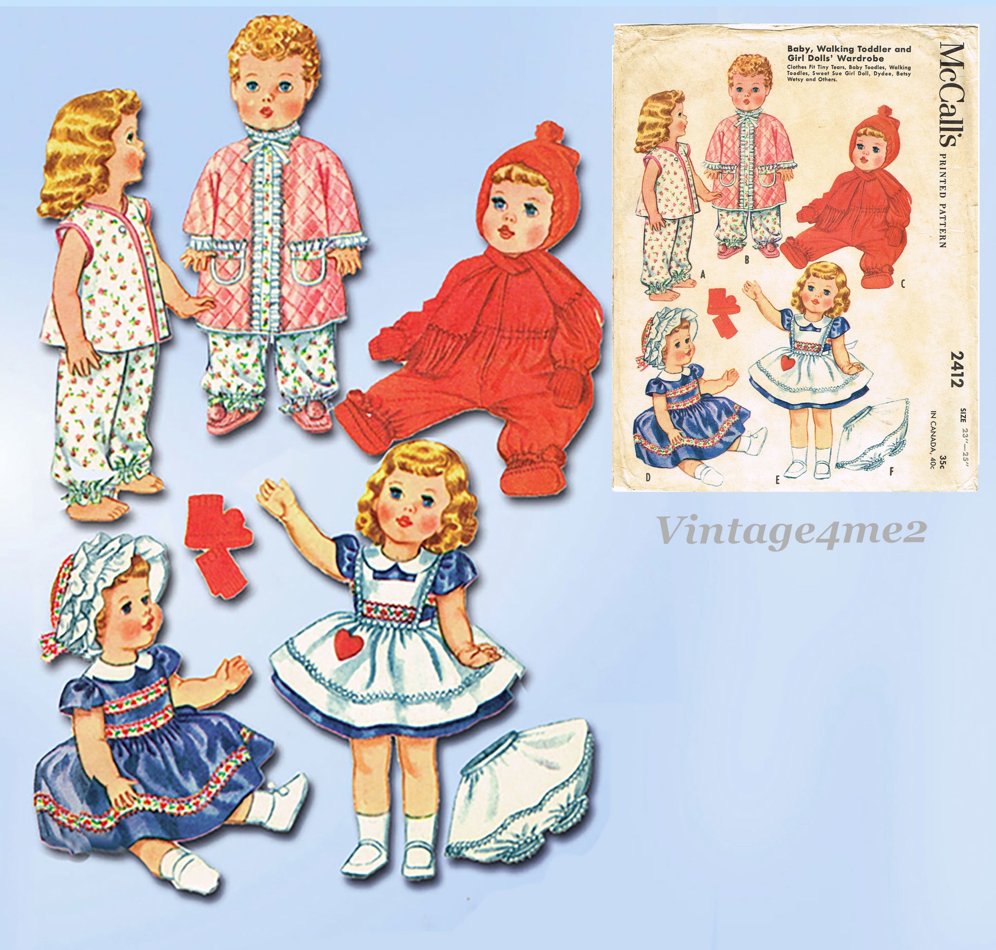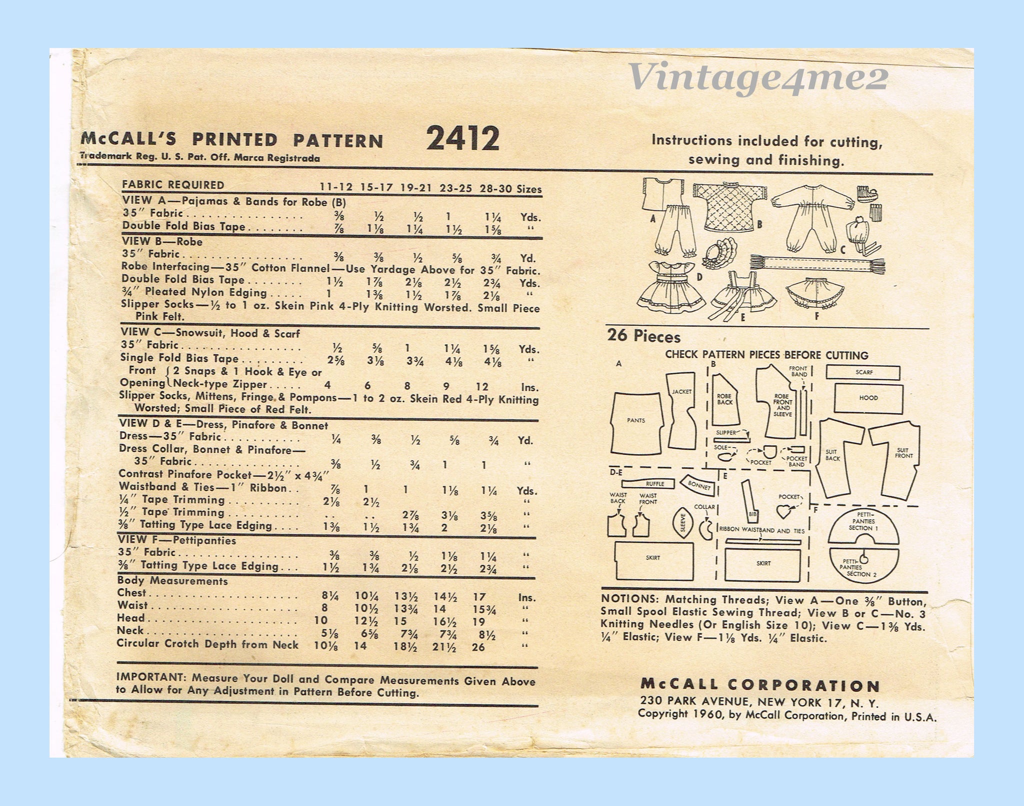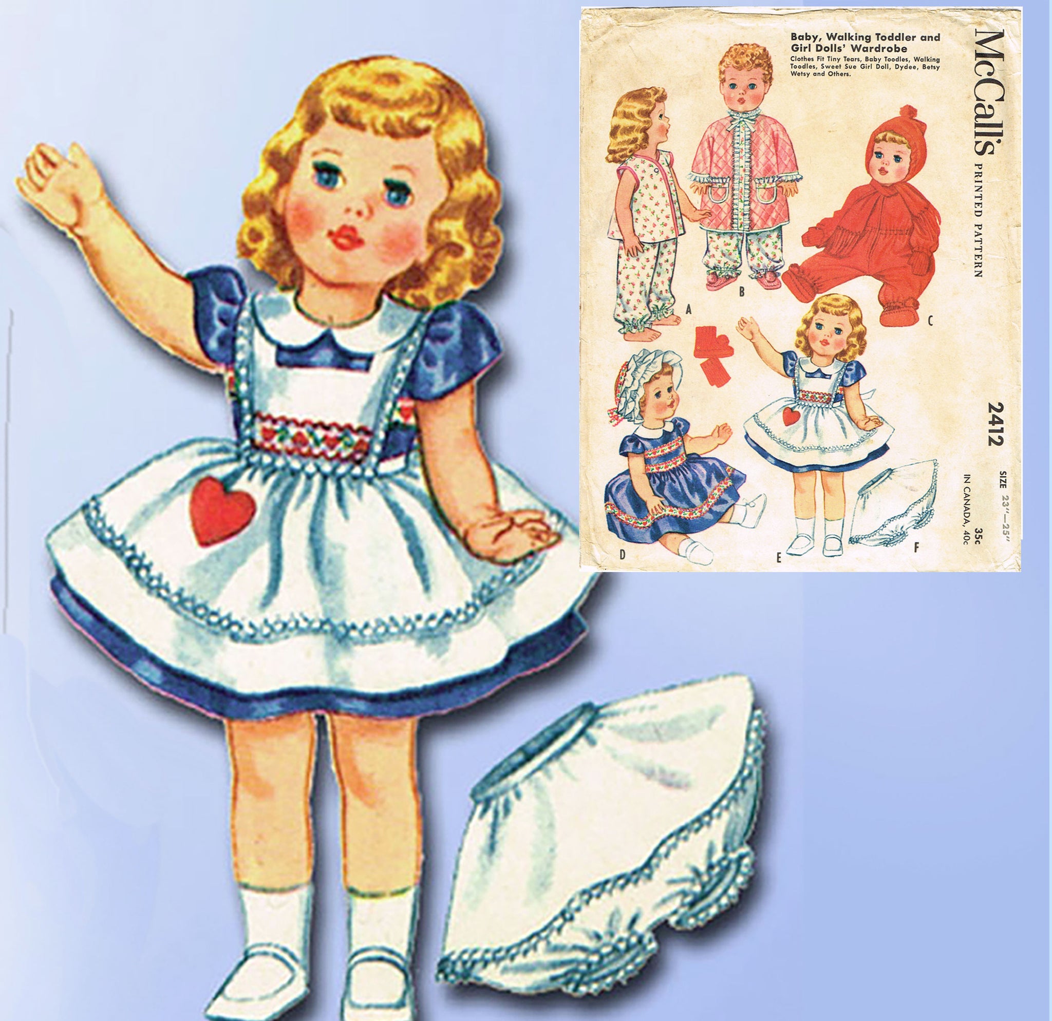 1960s Vintage McCalls Pattern 2412 Cute Betsy Wetsy 23-25 In Baby Doll Clothes