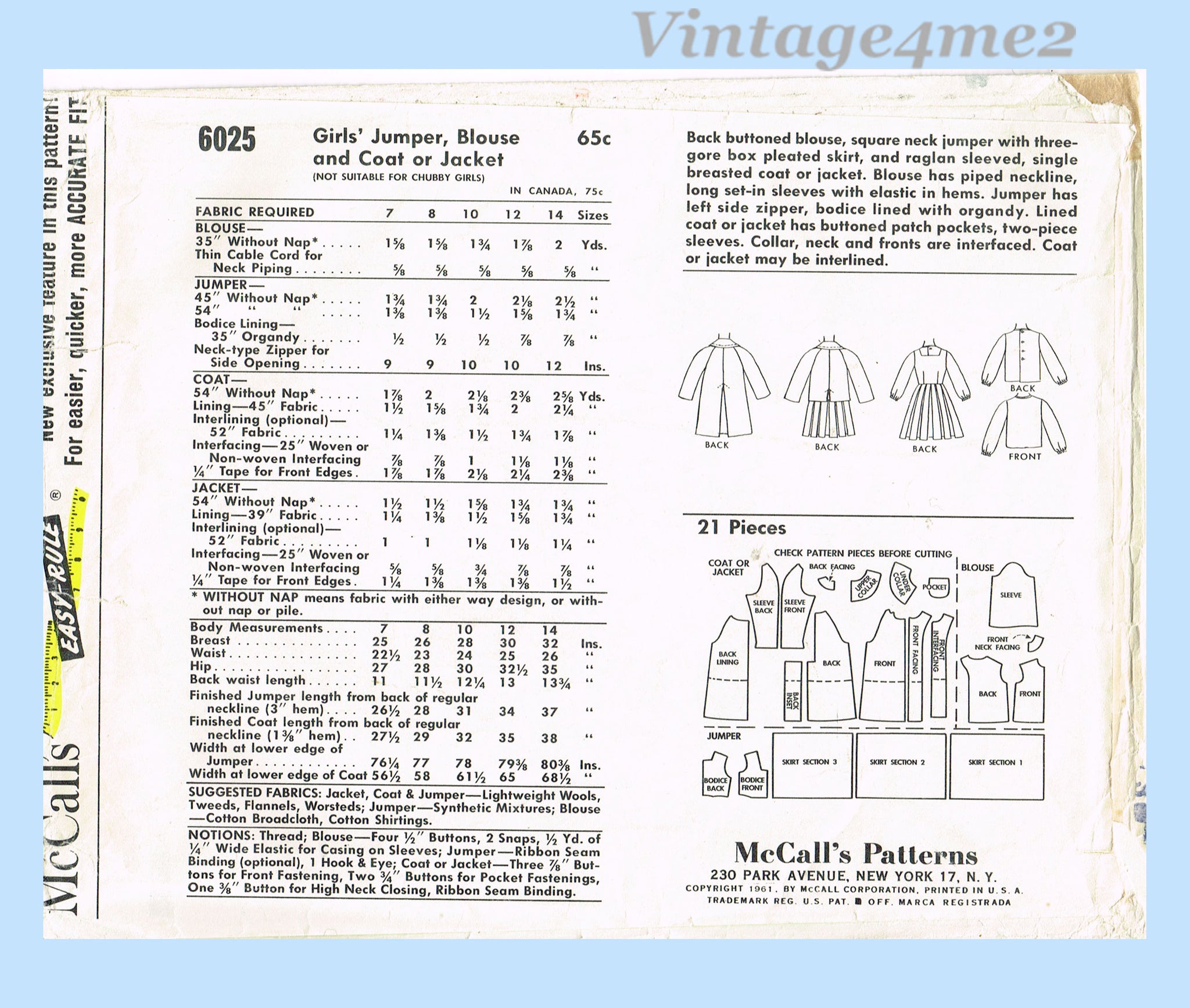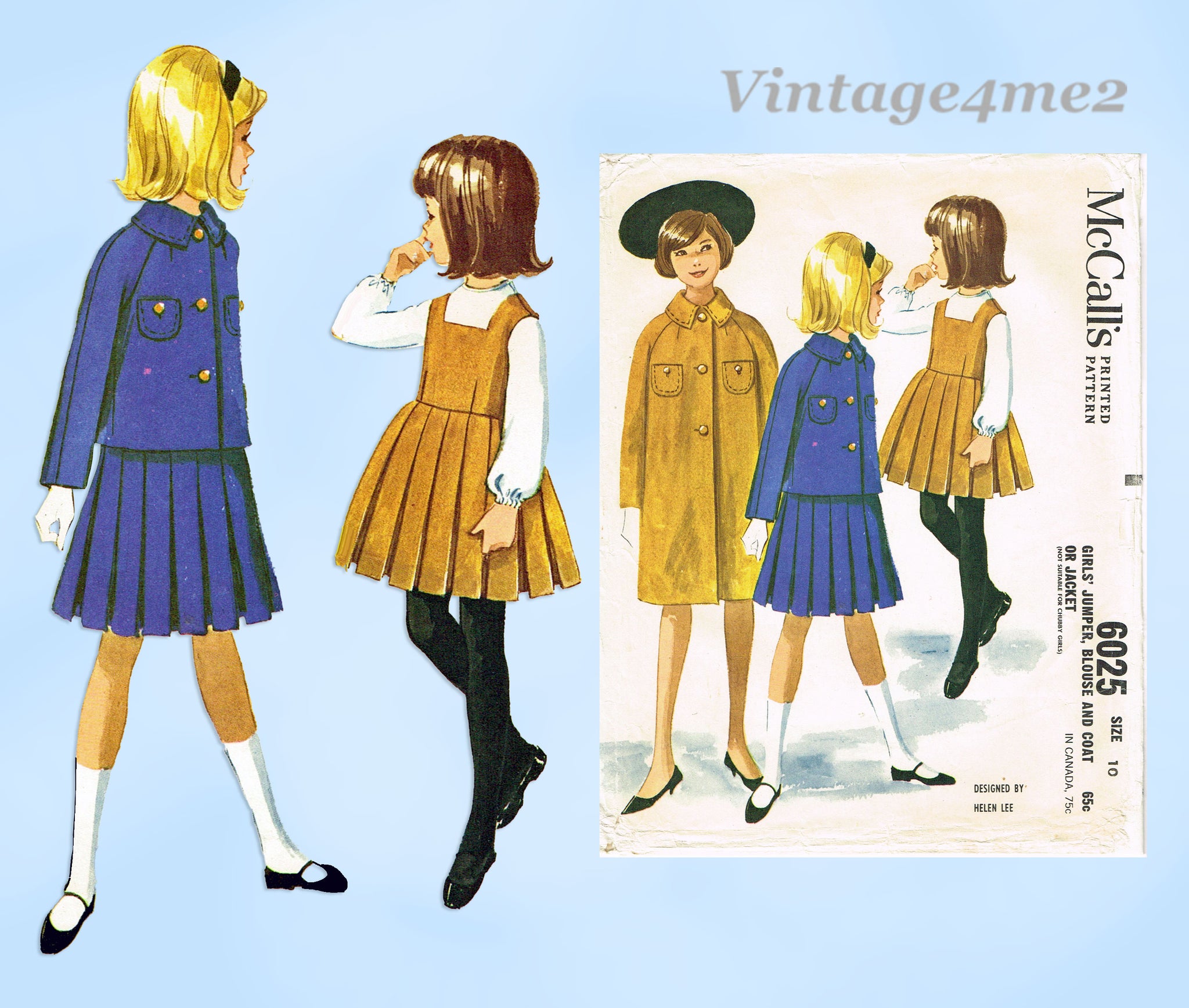 1960s Vintage McCalls Sewing Pattern 6025 Uncut Helen Lee Girls Dress & Coat Sz 10