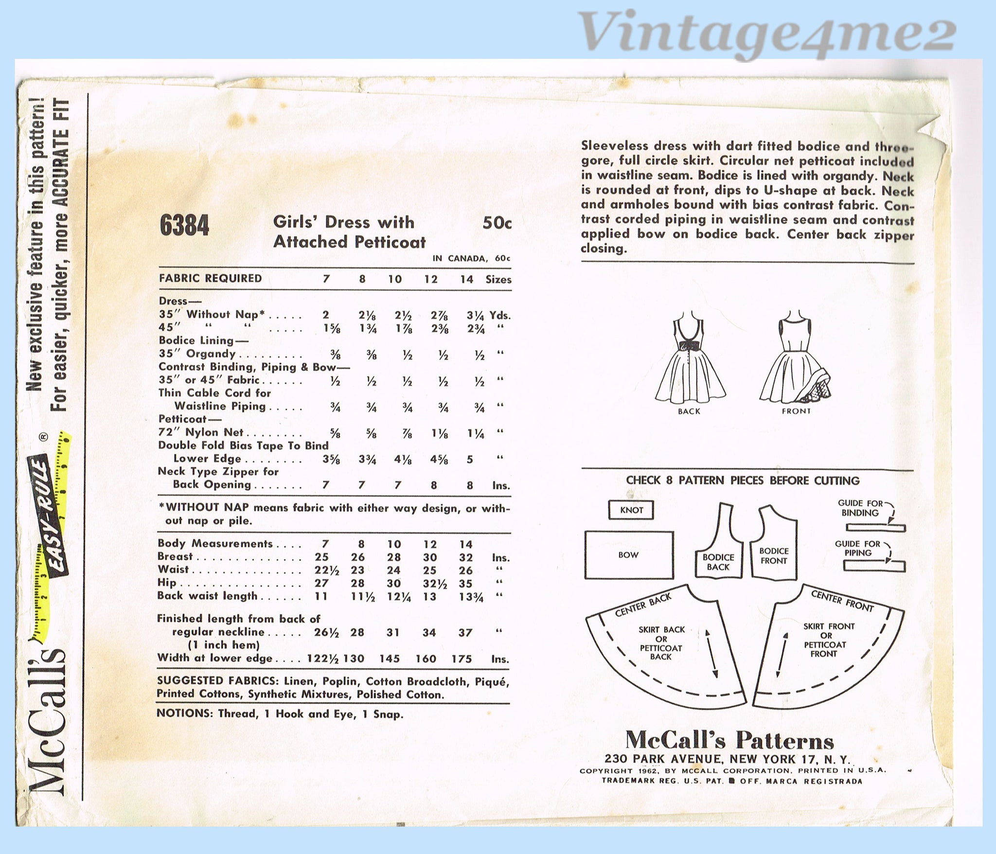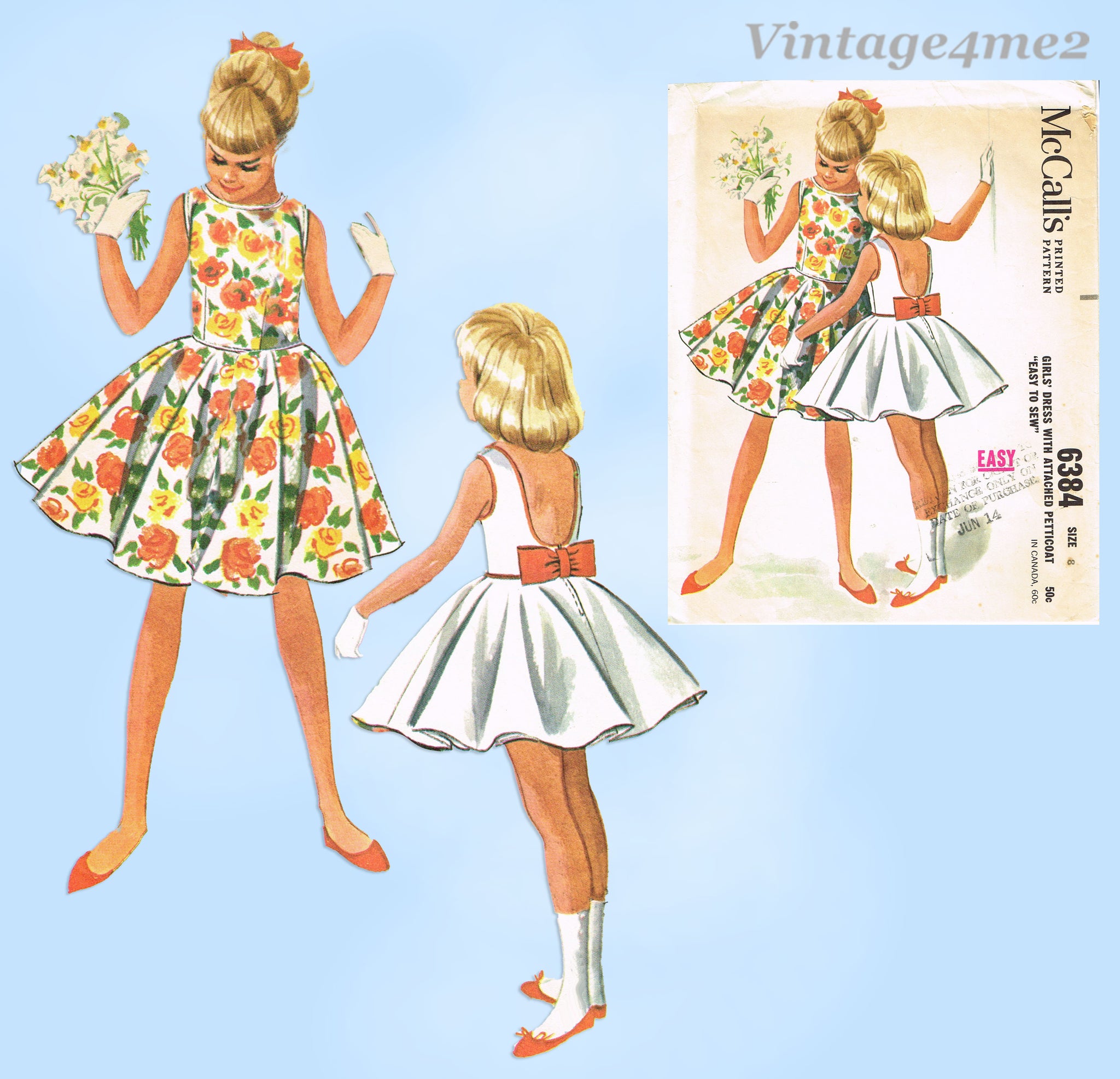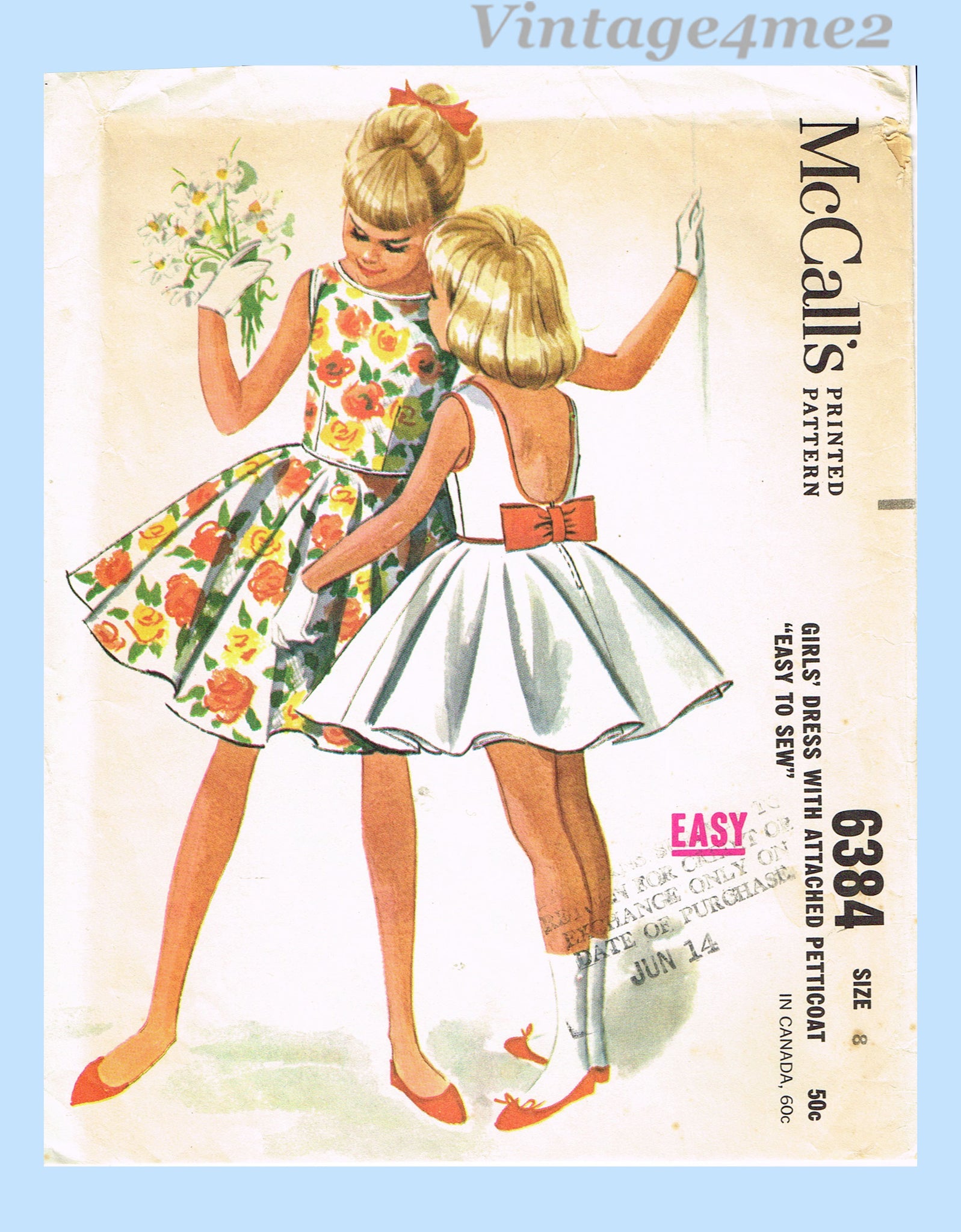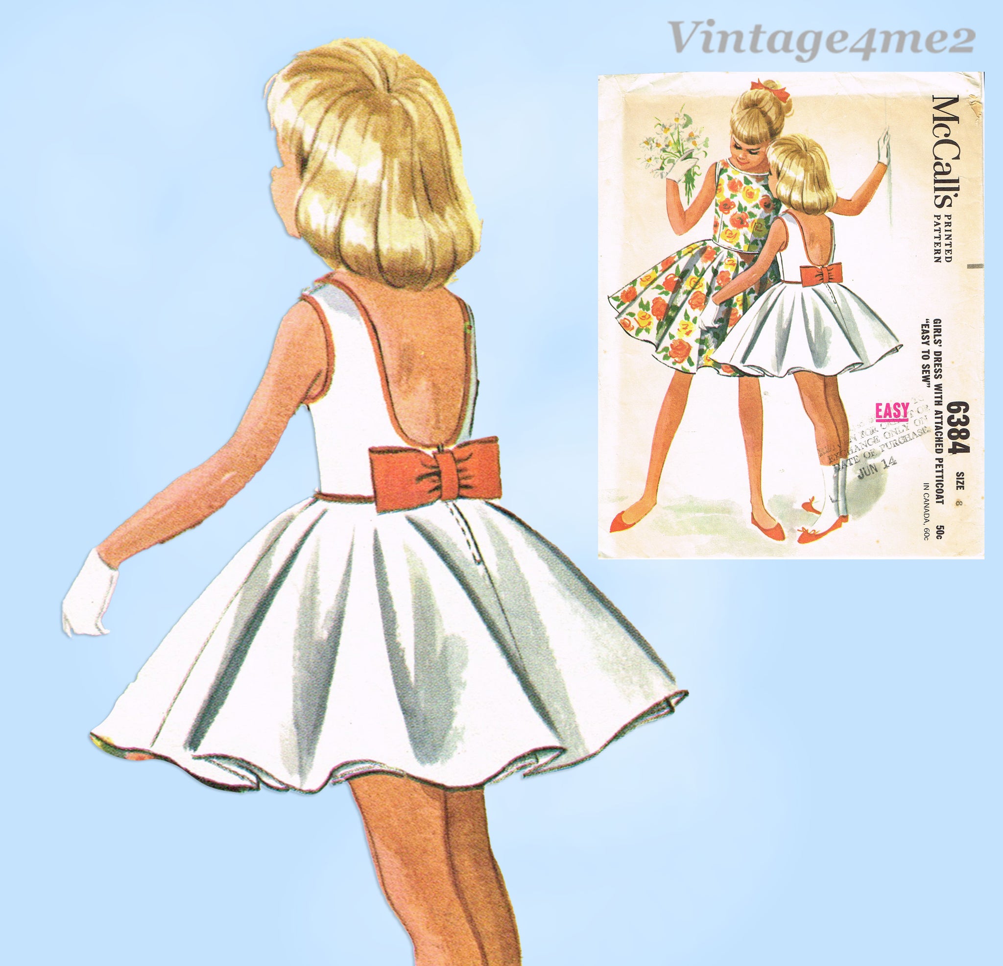 1960s Vintage McCall's Sewing Pattern 6384 Cute Little Girls Party Dress Size 8