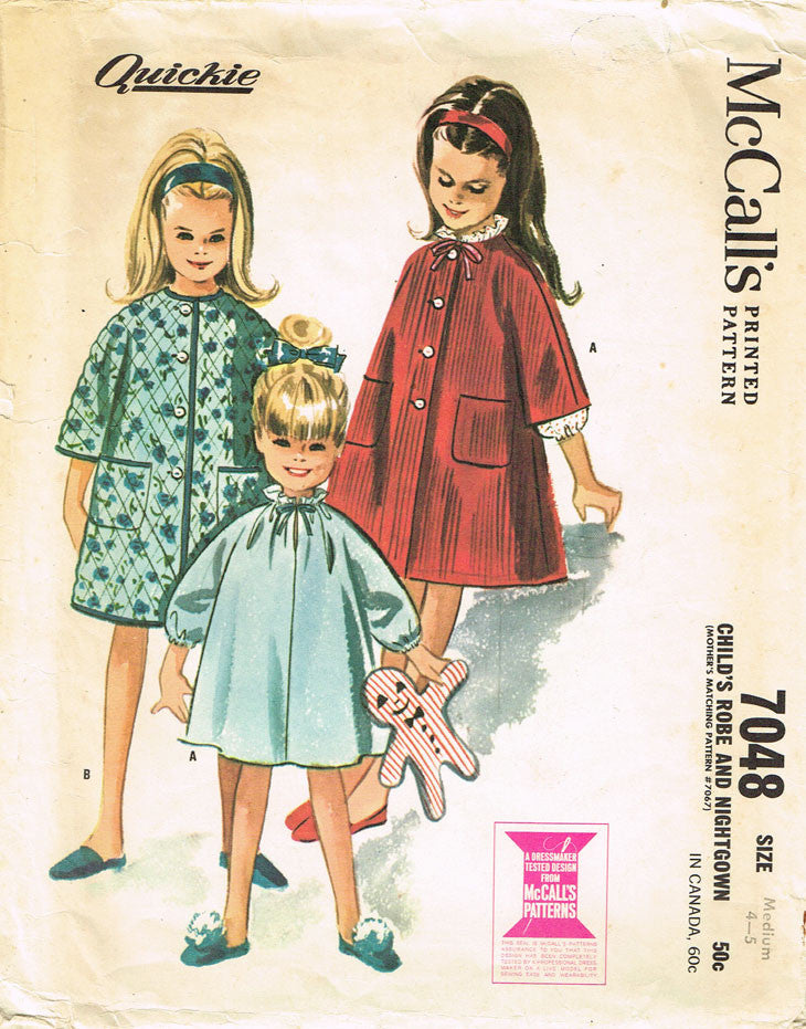 1960s Vintage McCalls Sewing Pattern 7048 Easy Toddler Girls Nighty Robe Sz 4-5
