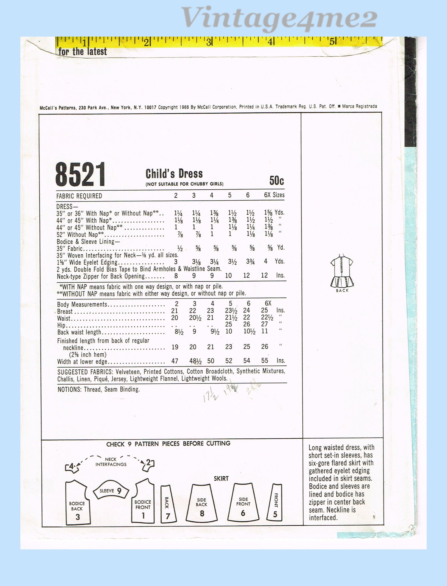 1960s Vintage McCall's Sewing Pattern 8521 Helen Lee Toddler Girls Dress Size 6