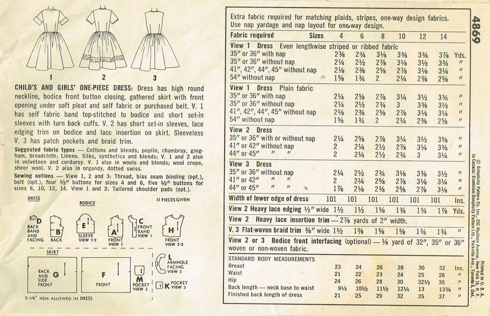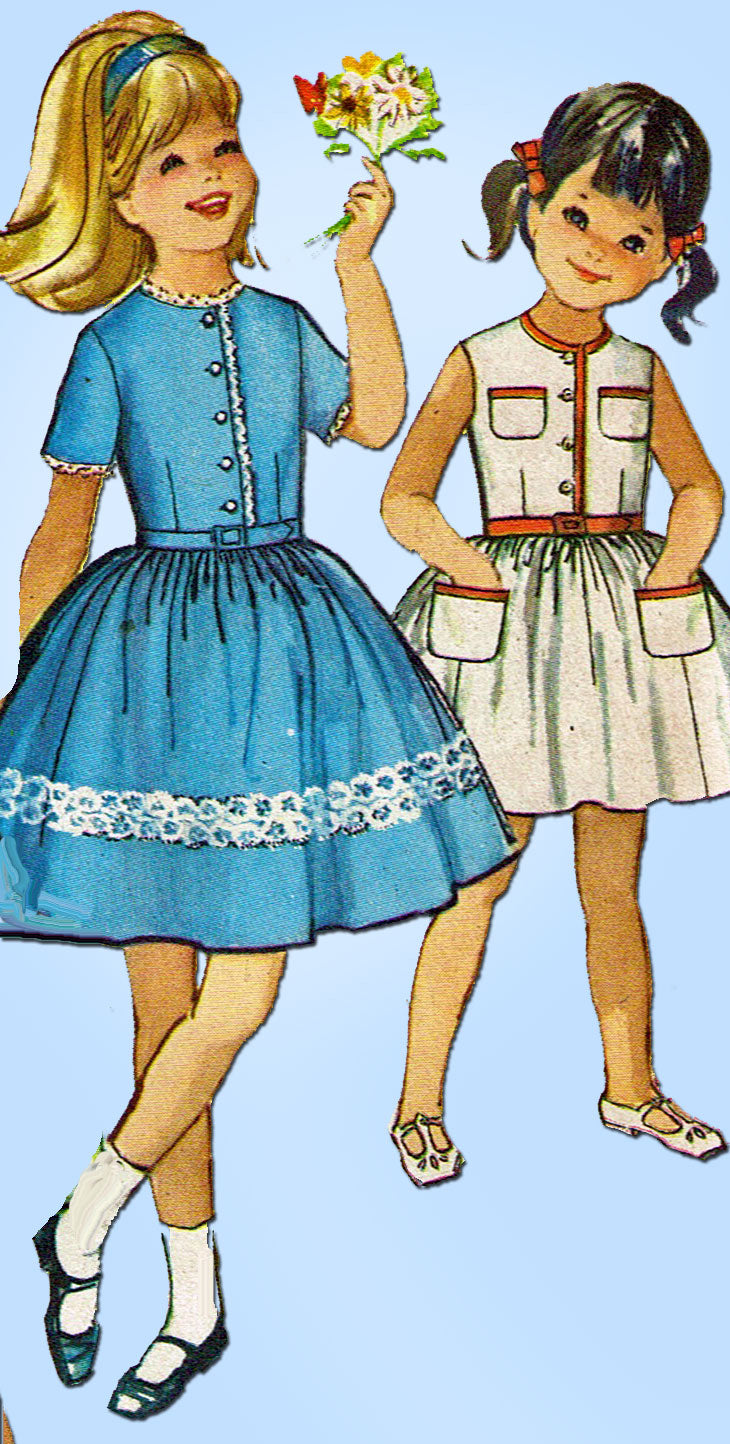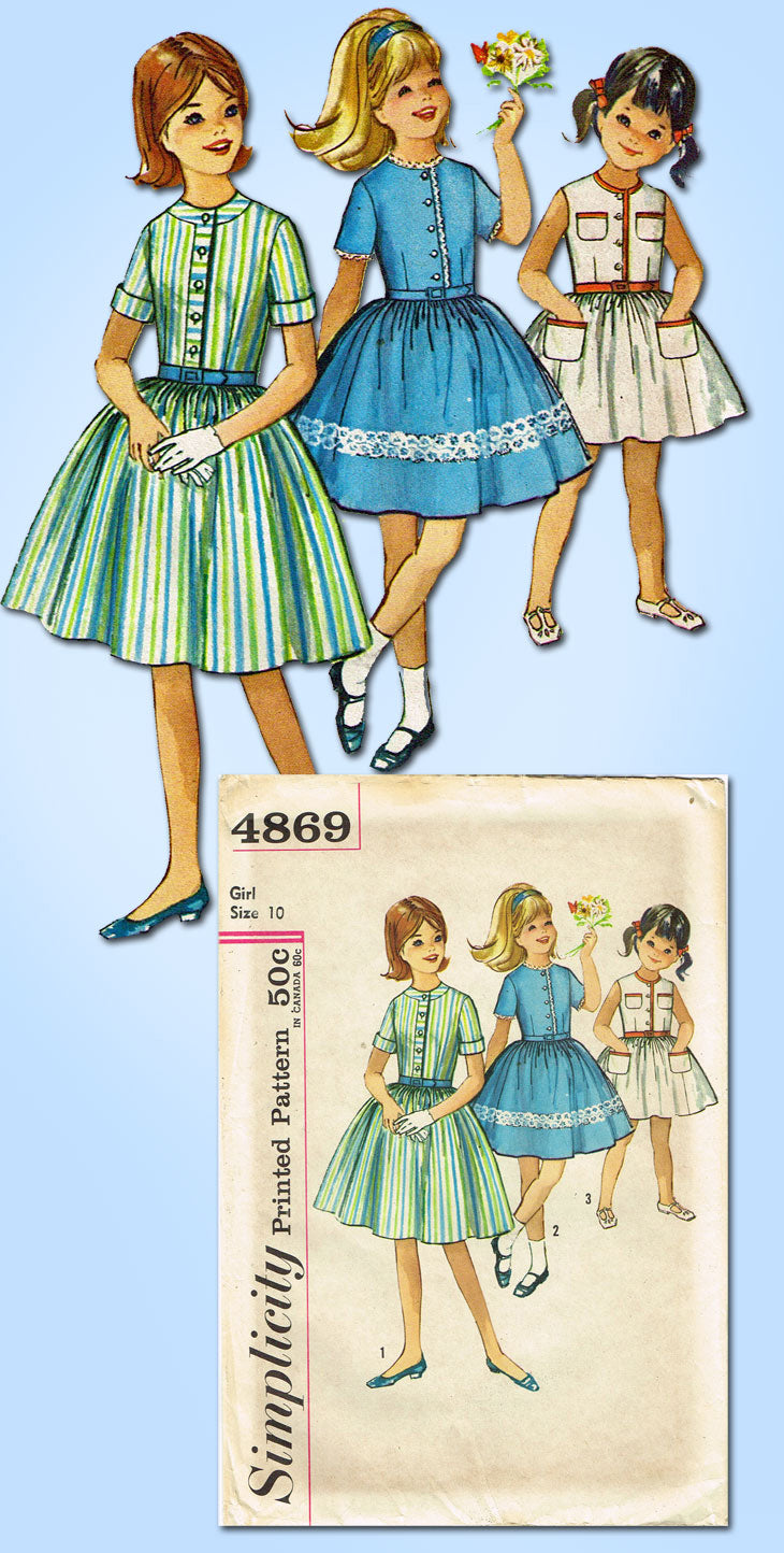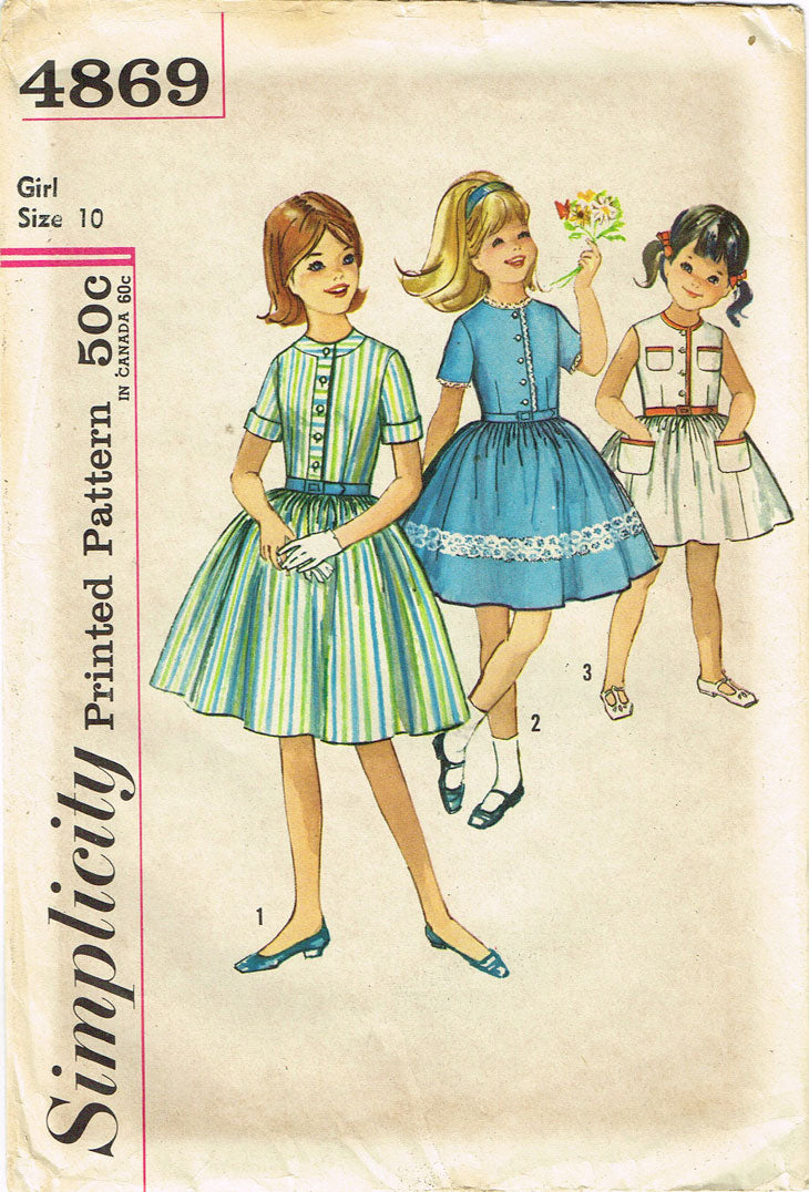1960s Vintage Simplicity Sewing Pattern 4869 Uncut Girls Shirtwaist Dress Size 10