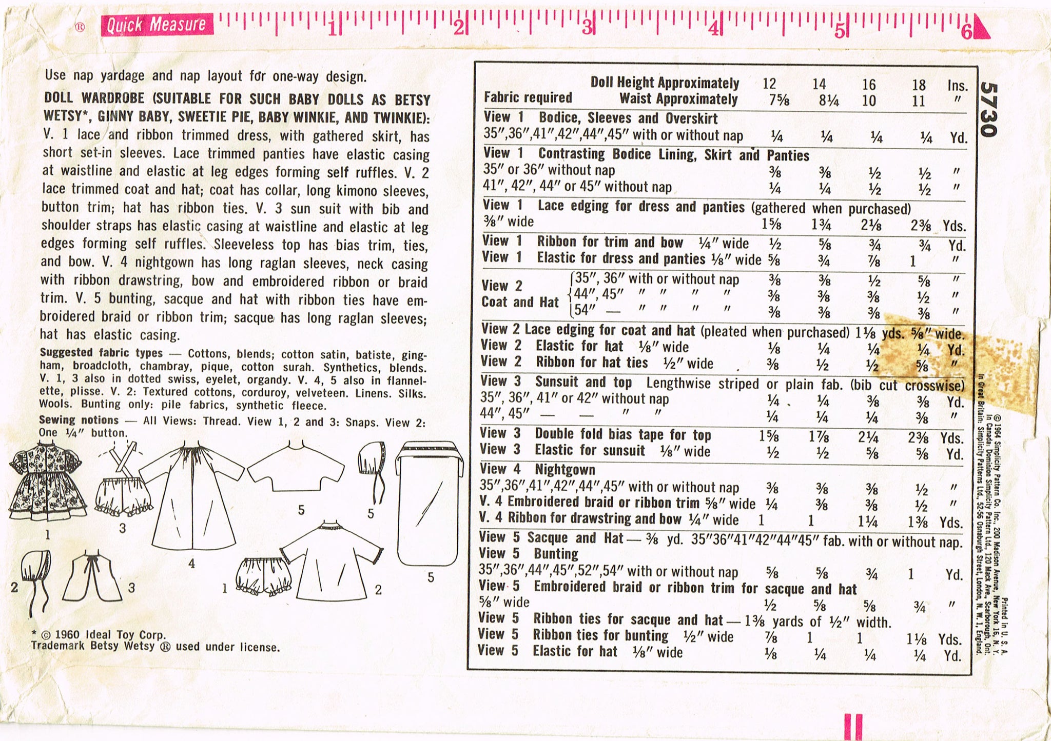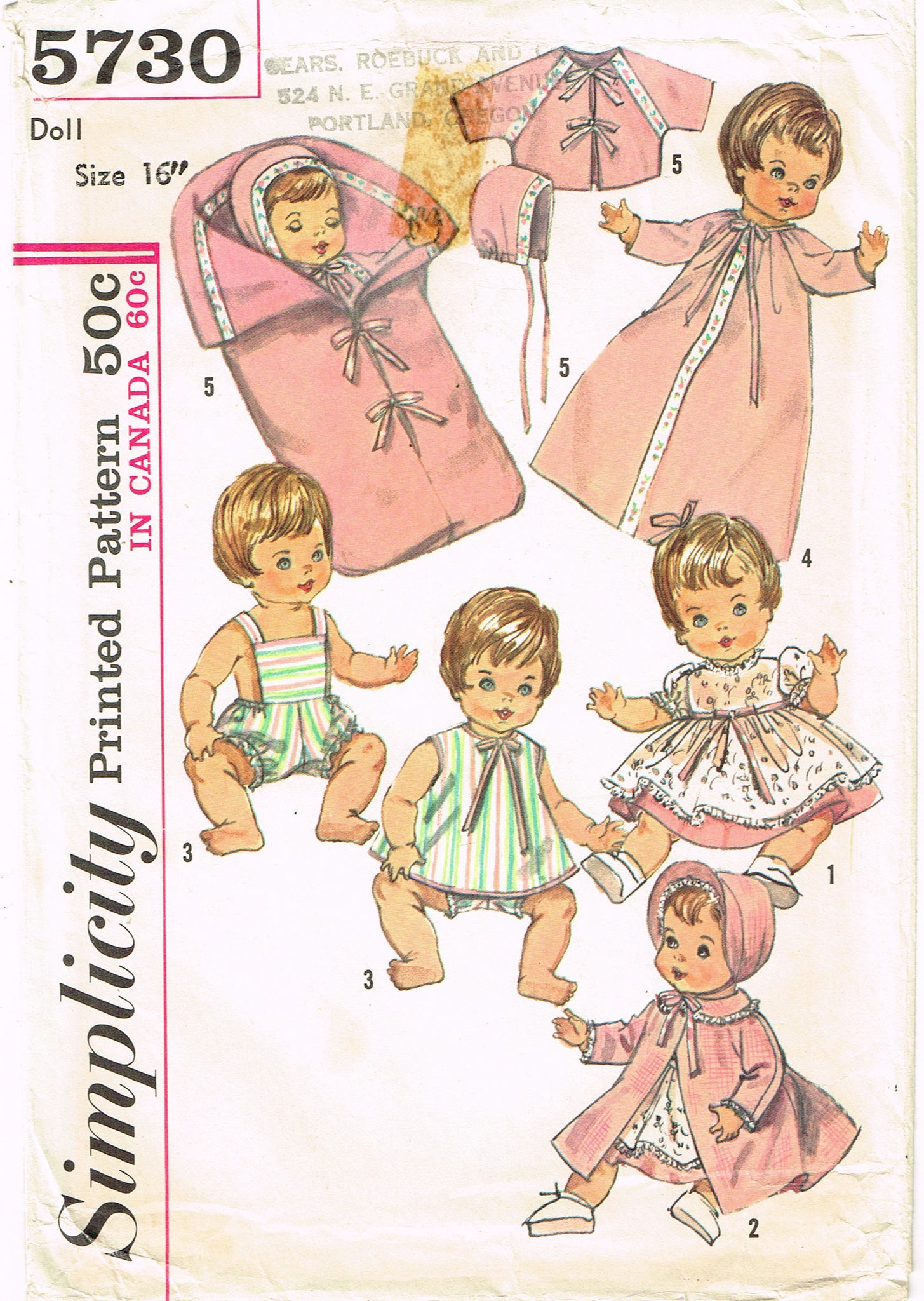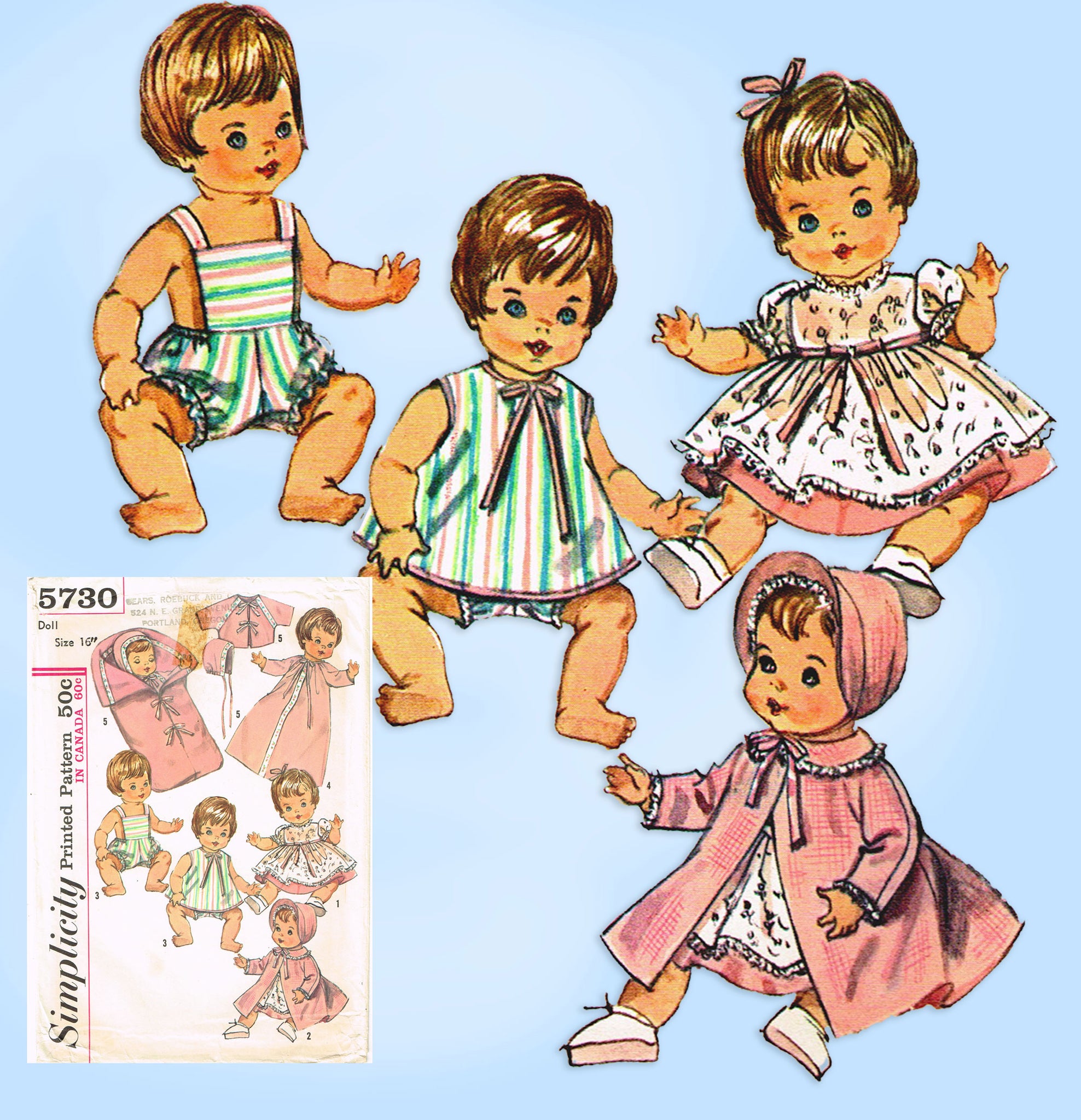 1960s Vintage Simplicity Sewing Pattern 5730 Cute 16in Tiny Tears Baby Doll Clothes
