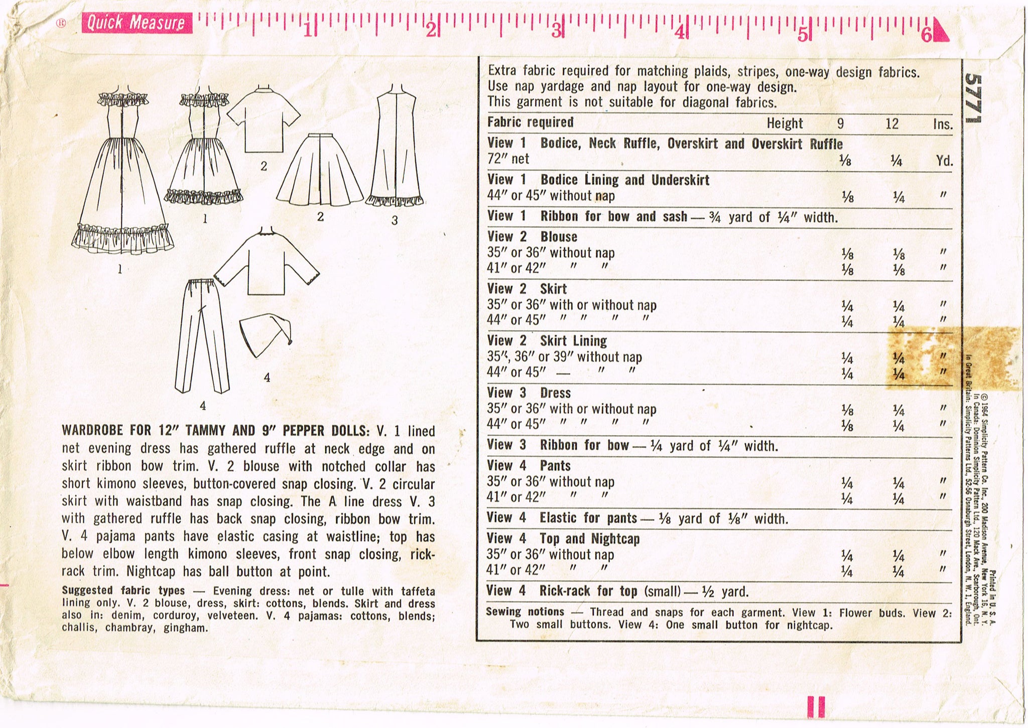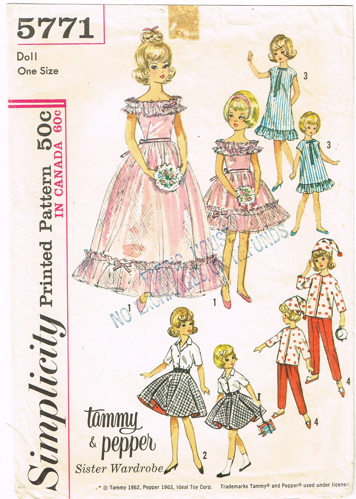1960s Vintage Simplicity Sewing Pattern 5771 Cute Tammy & Pepper Doll Clothes