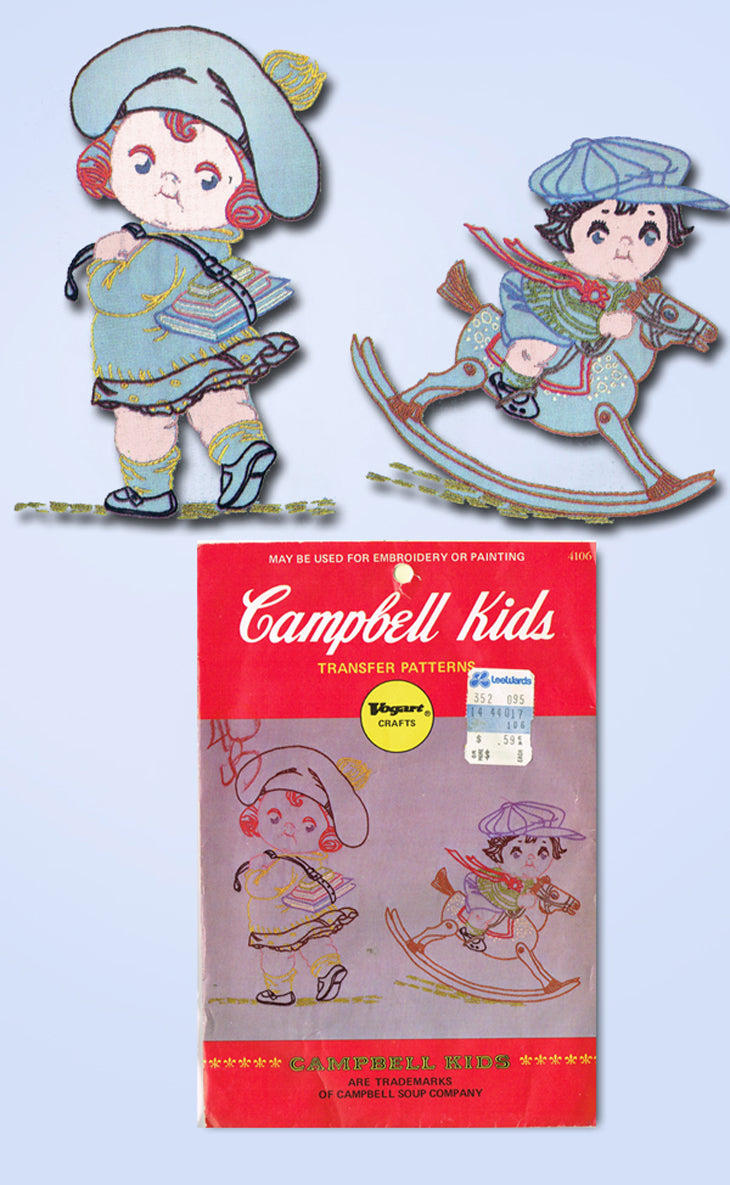 1960s Vintage Vogart Embroidery Transfer 4106 Uncut Campbell Kids at Play Motifs