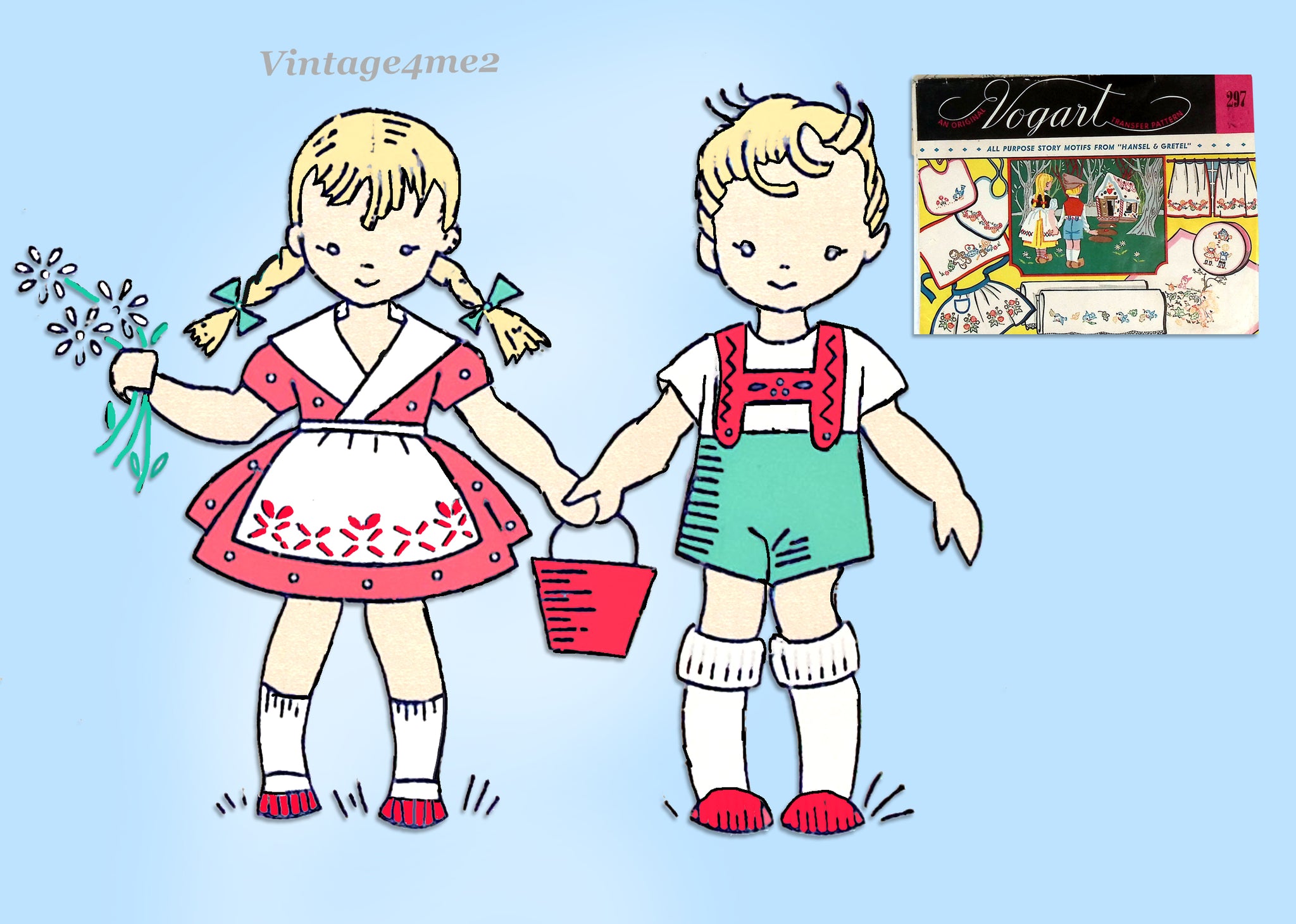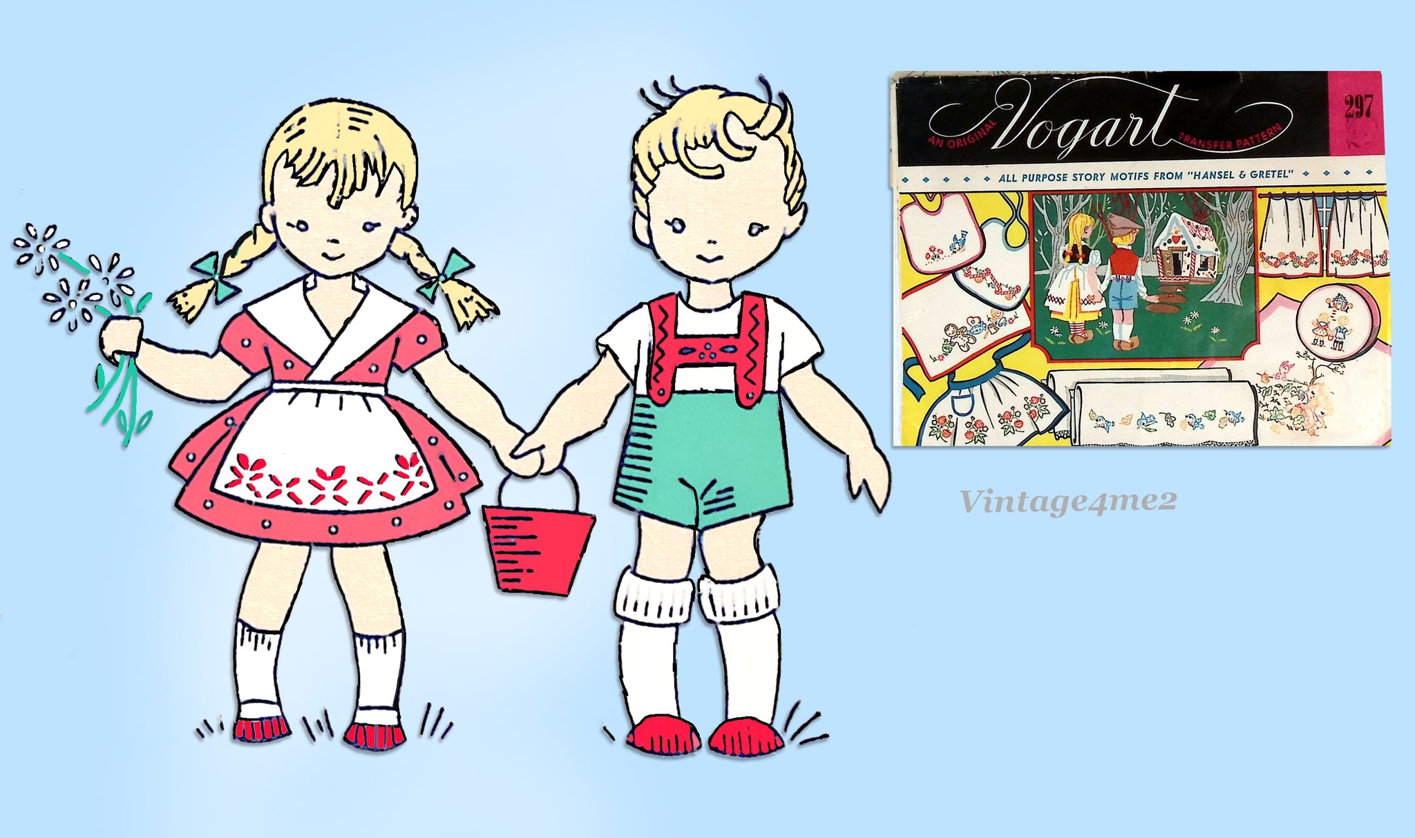 1950s Vintage Vogart Embroidery Transfer 297 Uncut Hansel & Gretel Fairytale Motifs