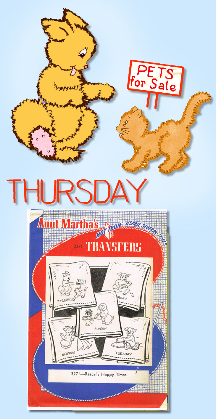 1950s VTG Aunt Martha's Embroidery Transfer 3271 Uncut Rascal DOW Tea Towels