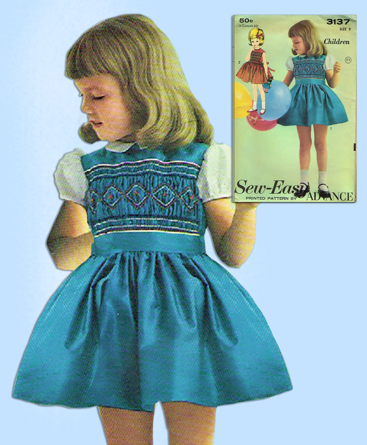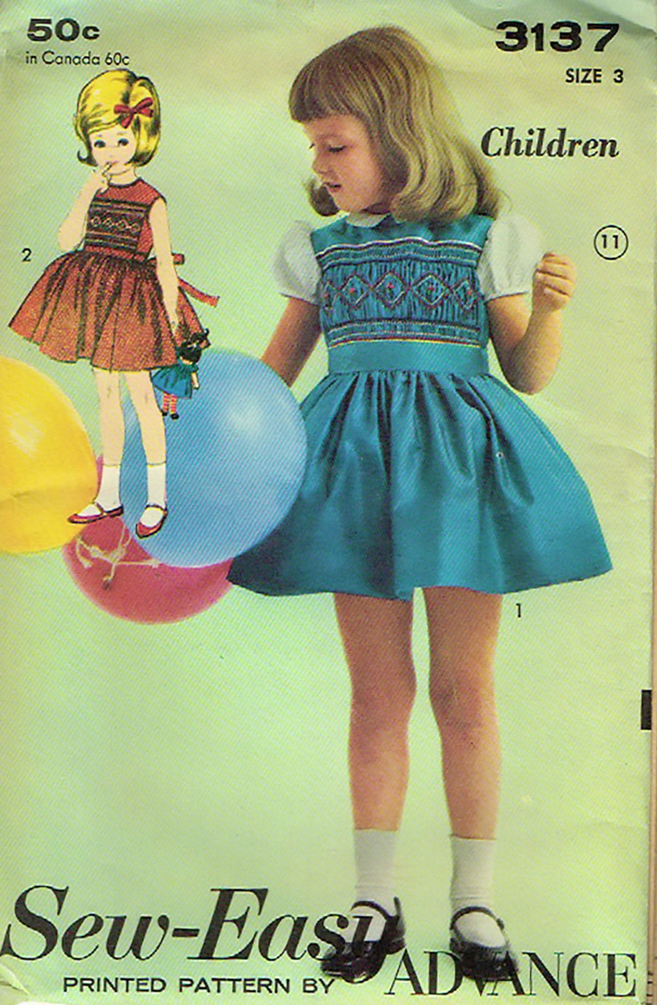 Advance 3137: 1950s Uncut Toddler Girls Smocked Dress Sz 3 Vintage Sewing Pattern