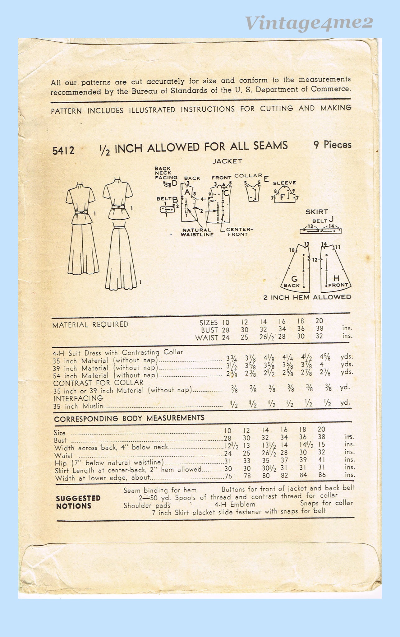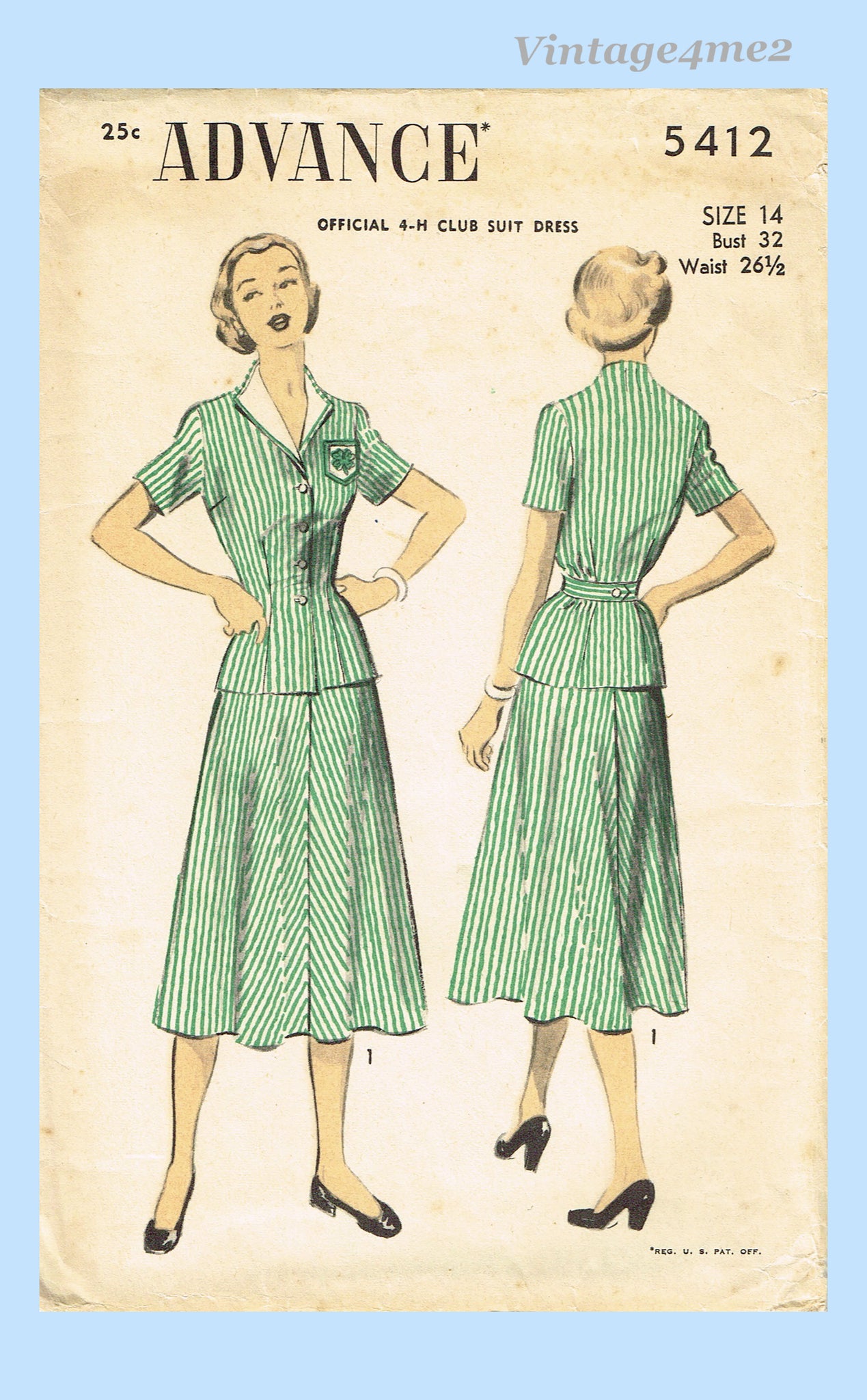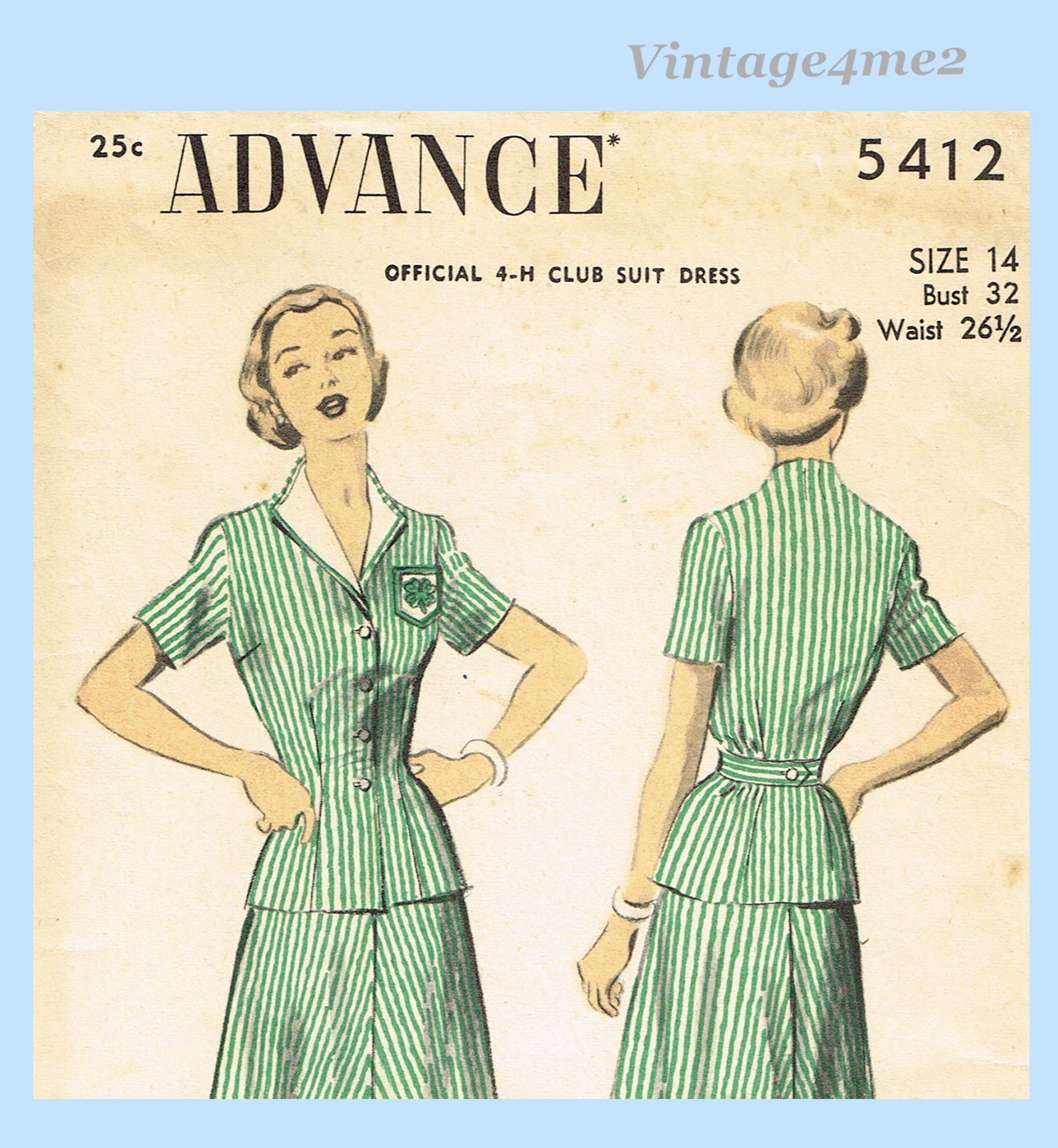 Advance 5412: 1950s Uncut Misses 4H Uniform Dress Sz 32 B Vintage Sewing Pattern