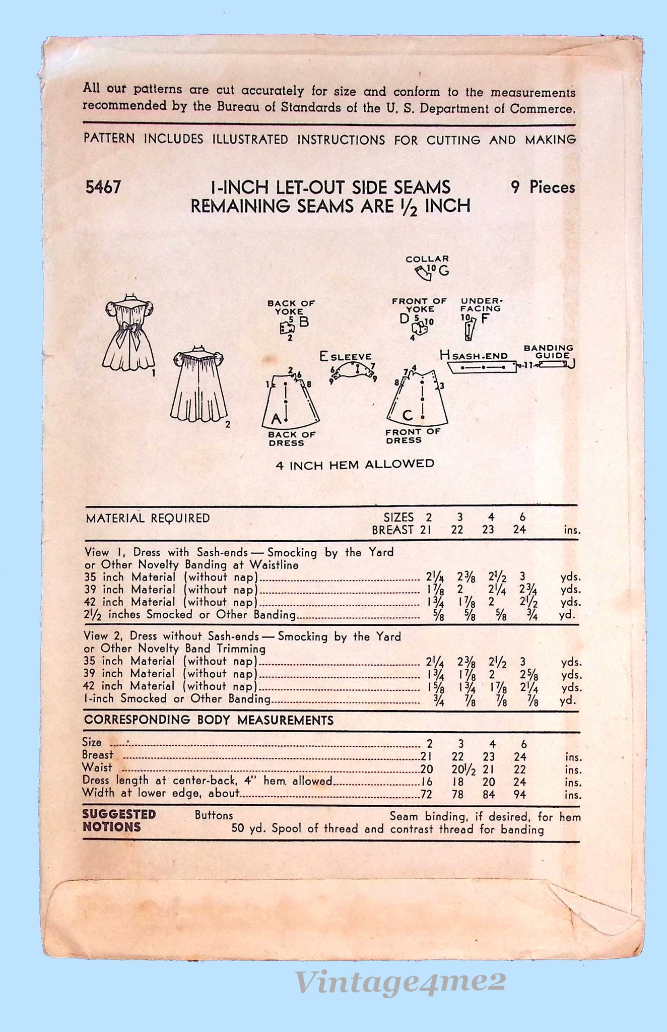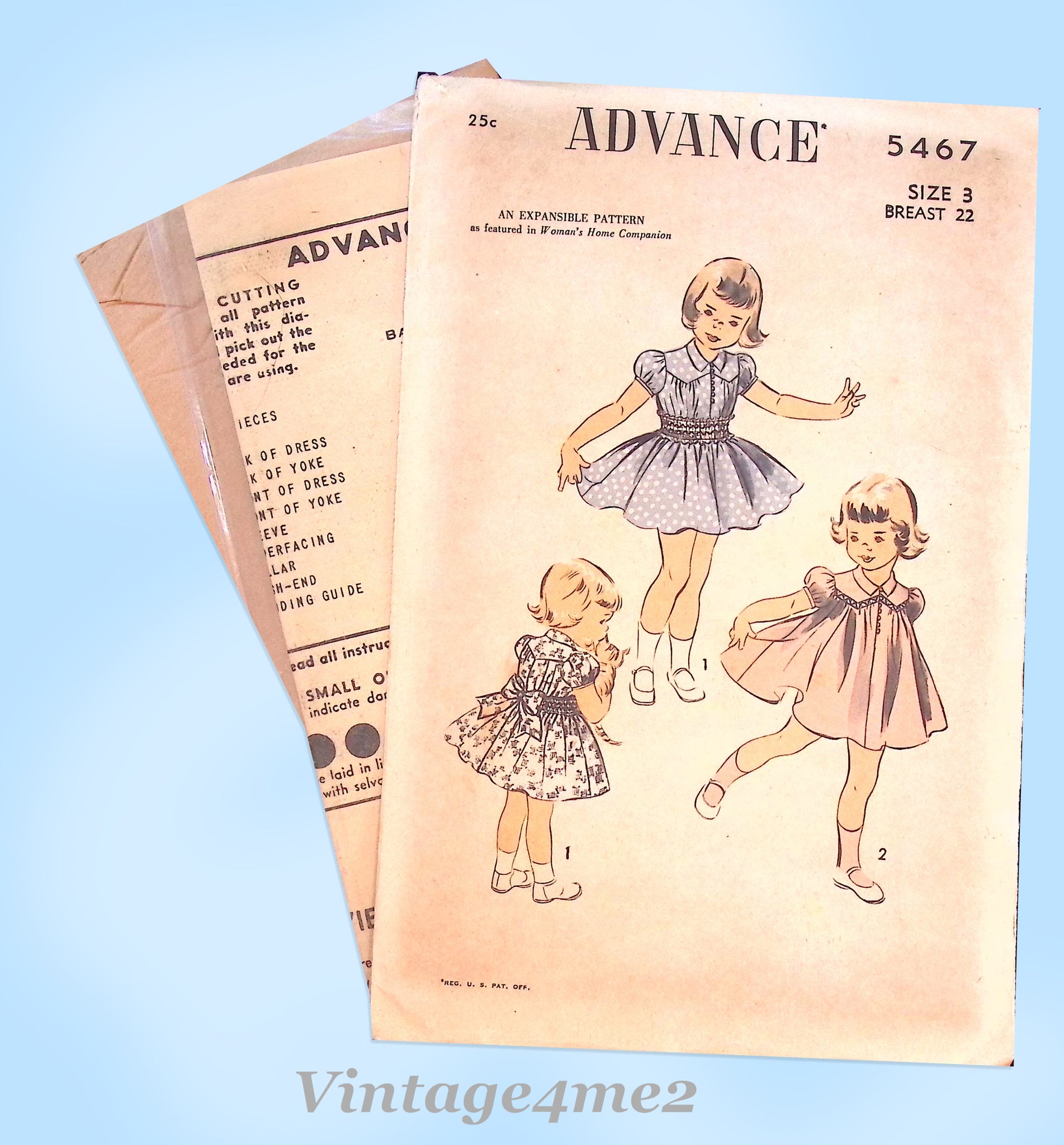 Advance 5467: 1950s Cute Uncut Toddler Girls Dress Sz 3 Vintage Sewing Pattern